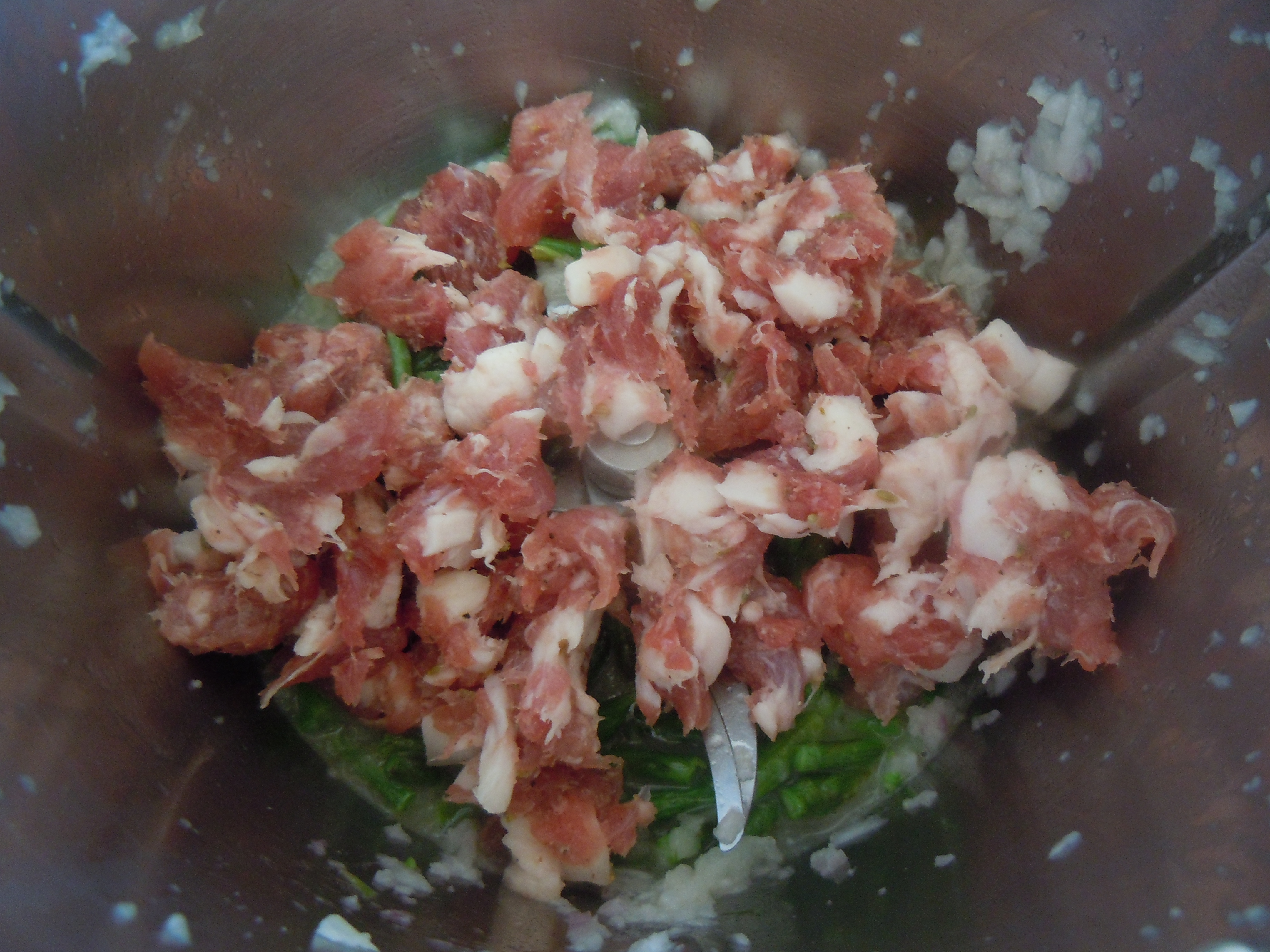 Aggiungere la salsiccia e soffriggere 1 min. 100^ Vel. 1