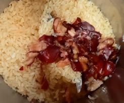 "coperchio chiuso" Mettere lo scalogno e tritare per 10 Sev Vel 7 radurane con la spatola unire 40 gr burro e soffriggere per 3 Minuti 100° Vel 1 - Ora unite il riso e 50 grammi di cilege tagliate con coltello e fate rosolare per 3 Minuti 100°
