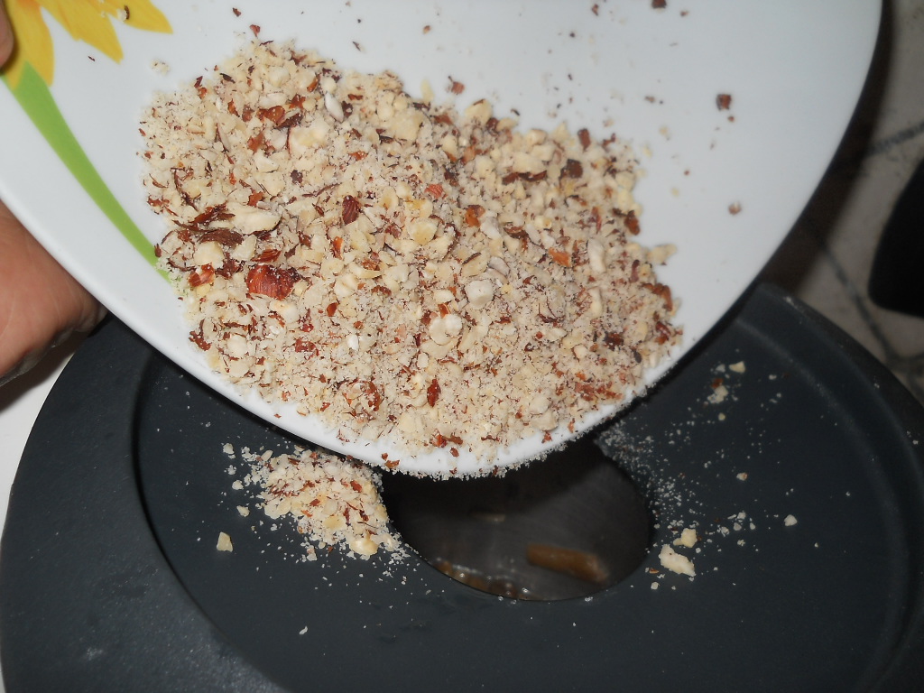 "coperchio chiuso" le nocciole e date qualche colpo turbo non devono essere troppo fini ma nemmeno troppo grosse e metterele da parte Senza lavare il
