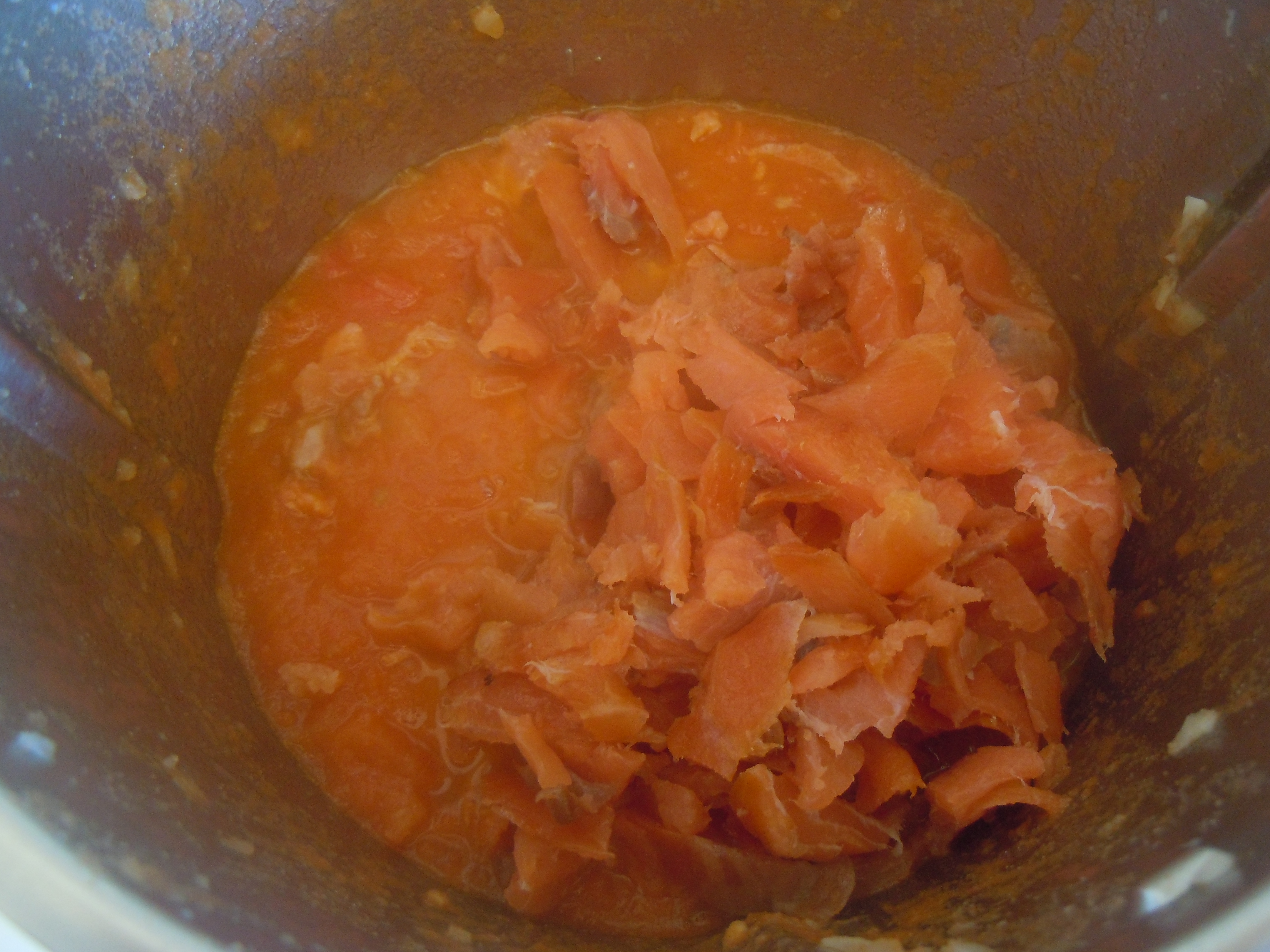 "antiorario" Aggiungere il salmone e cuocere 3 min. Temperatura Varoma Vel. 1