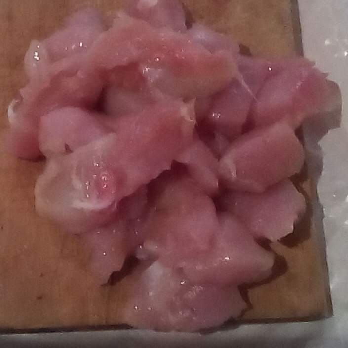 Aggiungere il petto di pollo tagliato sale e Peppe cuocere:20min 100°