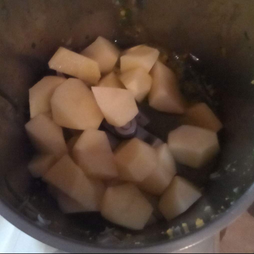 Aggiungere le patate a pezzi e il vino 3min 100°