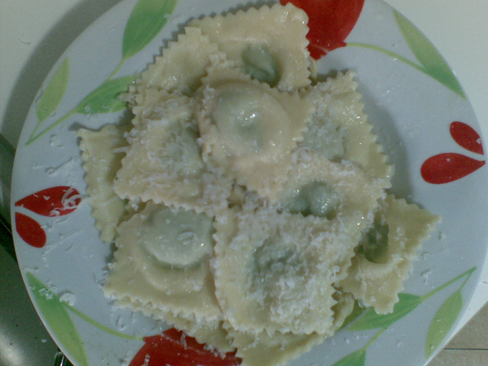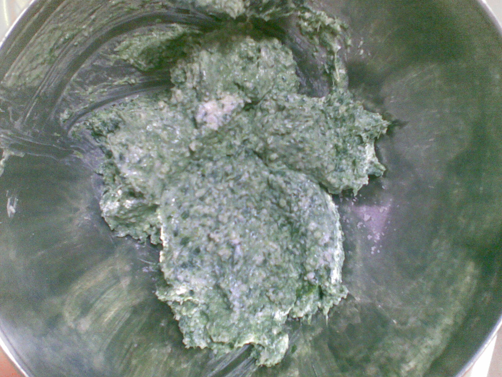 "coperchio chiuso" la ricotta, il parmigiano, il tuorlo d’uovo, la noce moscata le erbette ben asciutte. Tritare per 10sec. a vel.7Togliere il ripieno e metterlo in una ciotola.