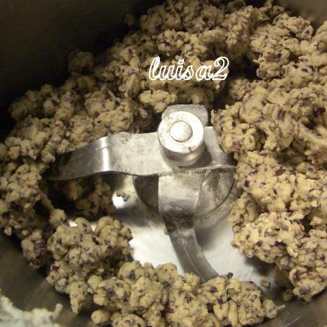 "coperchio chiuso" 50 g di farina, presa dal totale, le foglie di trevisana , tritare: 10 sec vel 4, unire la rimanente farina e la semola, le uova e l'olio, impastare: 2 min vel