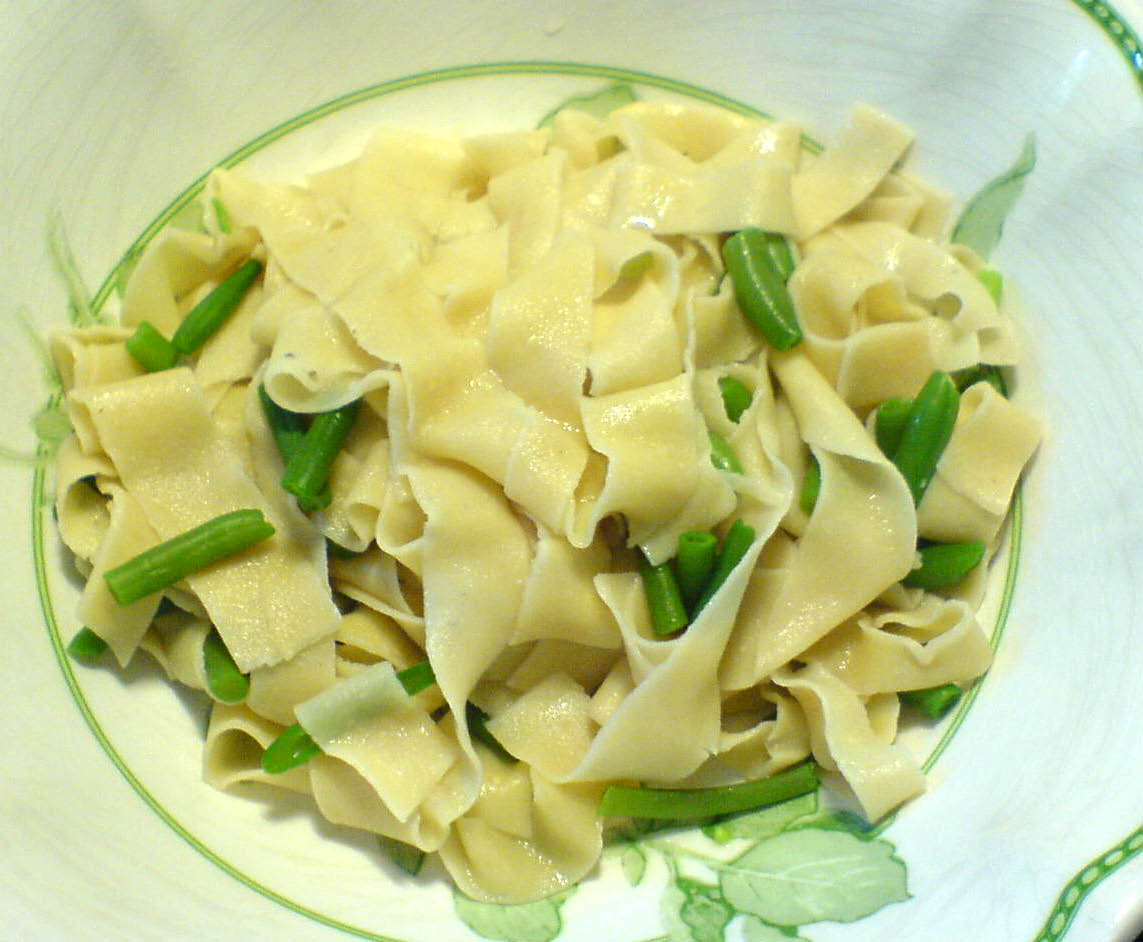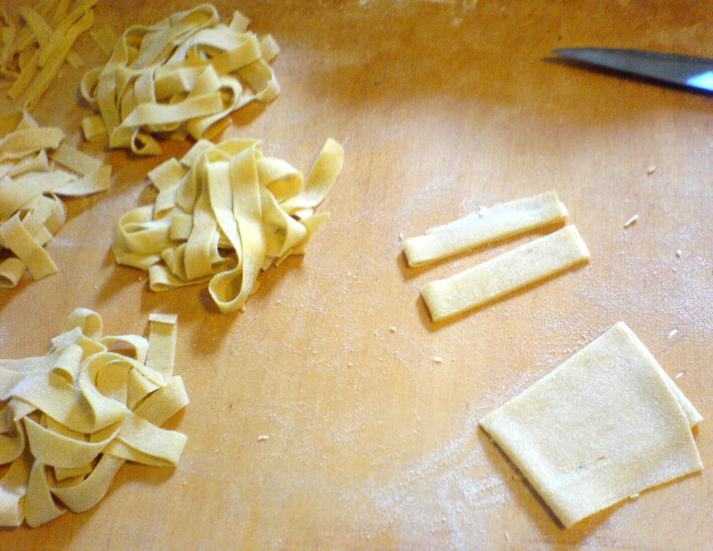 "velocità soft" . Terminata la cottura salare e mescolare: 10 sec vel 2, versare nella zuppiera con il tritoMettere a scaldare l'acqua per la pasta. Stendere la pasta e tagliarla a tagliatelle