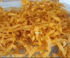 - Tirate la pasta con la macchinetta fino alla penultima tacca, tagliate le tagliatelle e fatele seccare per alcune ore.