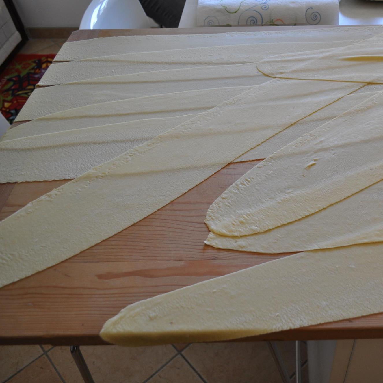 Queste sono le striscie di pasta come vengono "tirate" con la macchinetta.