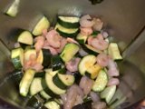 "coperchio chiuso" l'olio, l'aglio e il prezzemolo: 3 min. vel. 1 temp. 90°Inserire le zucchine tagliate a pezzetti, i gamberi surgelati e un cucchiaino di dado Bimby: 15 min. vel. 1 temp. 100°
