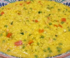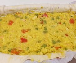 Al termine versare in una pirofila e far raffreddare. - conil rotolo di pasta sfoglia rivestire uno stampo da plumcake, versare il risotto, compattarlo con il dorso di un cucchiaio e chiudere con la parte di pasta sfoglia che fuoriesce dallo stampo.