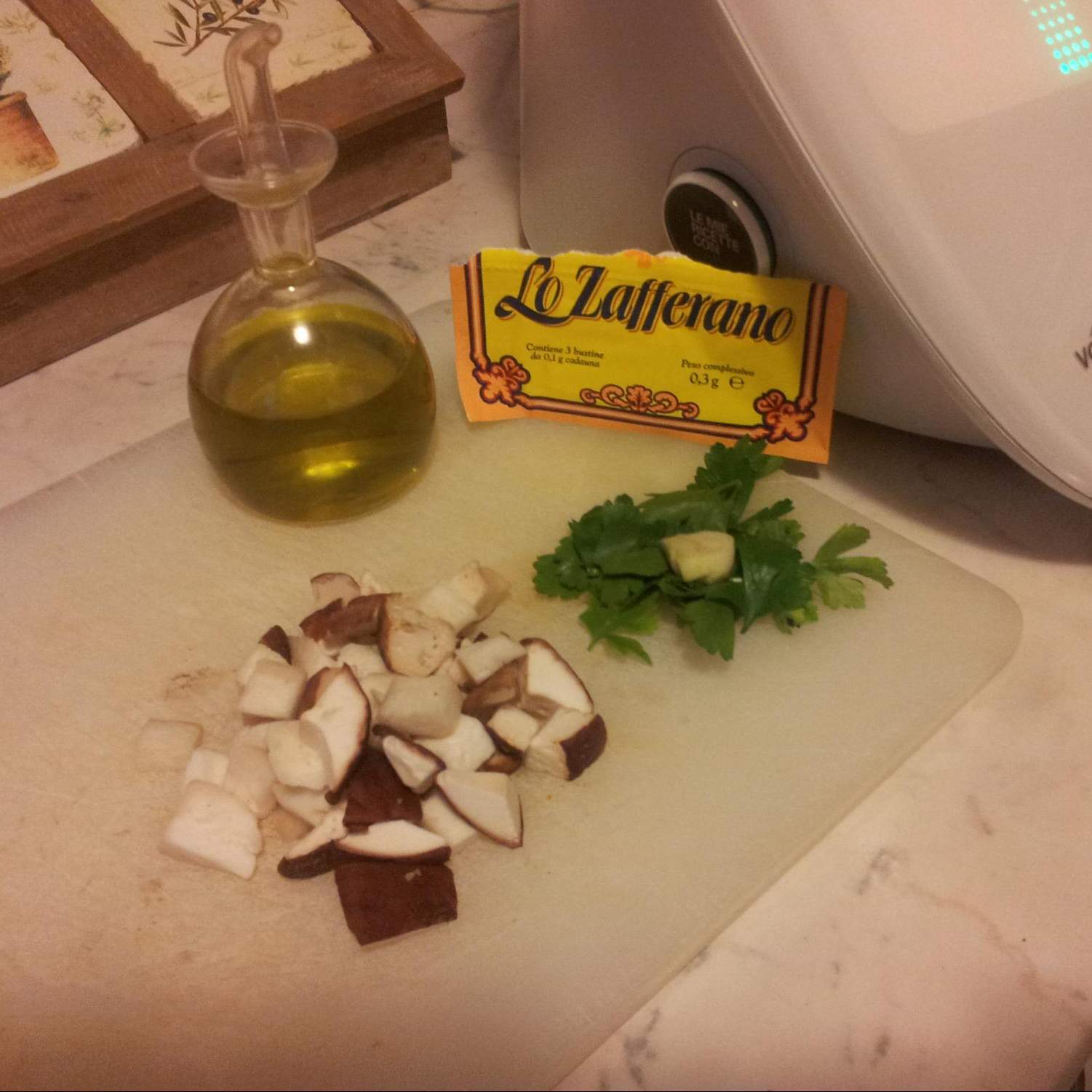 1. Pulire e tagliare i porcini a cubetti. 2. Mettere l'aglio e il prezzemolo nel