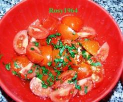 "coperchio chiuso" il prezzemolo, precedentemente lavato e asciugato: 5 sec vel 6/7 e mettere da parte; - Lavare accuratamente i pomodorini e tagliargli a metà, metterli in una ciotolina e condire con 20g di olio, sale, buccia di mezzo limone grattugiata e parte del prezzemolo tritato;