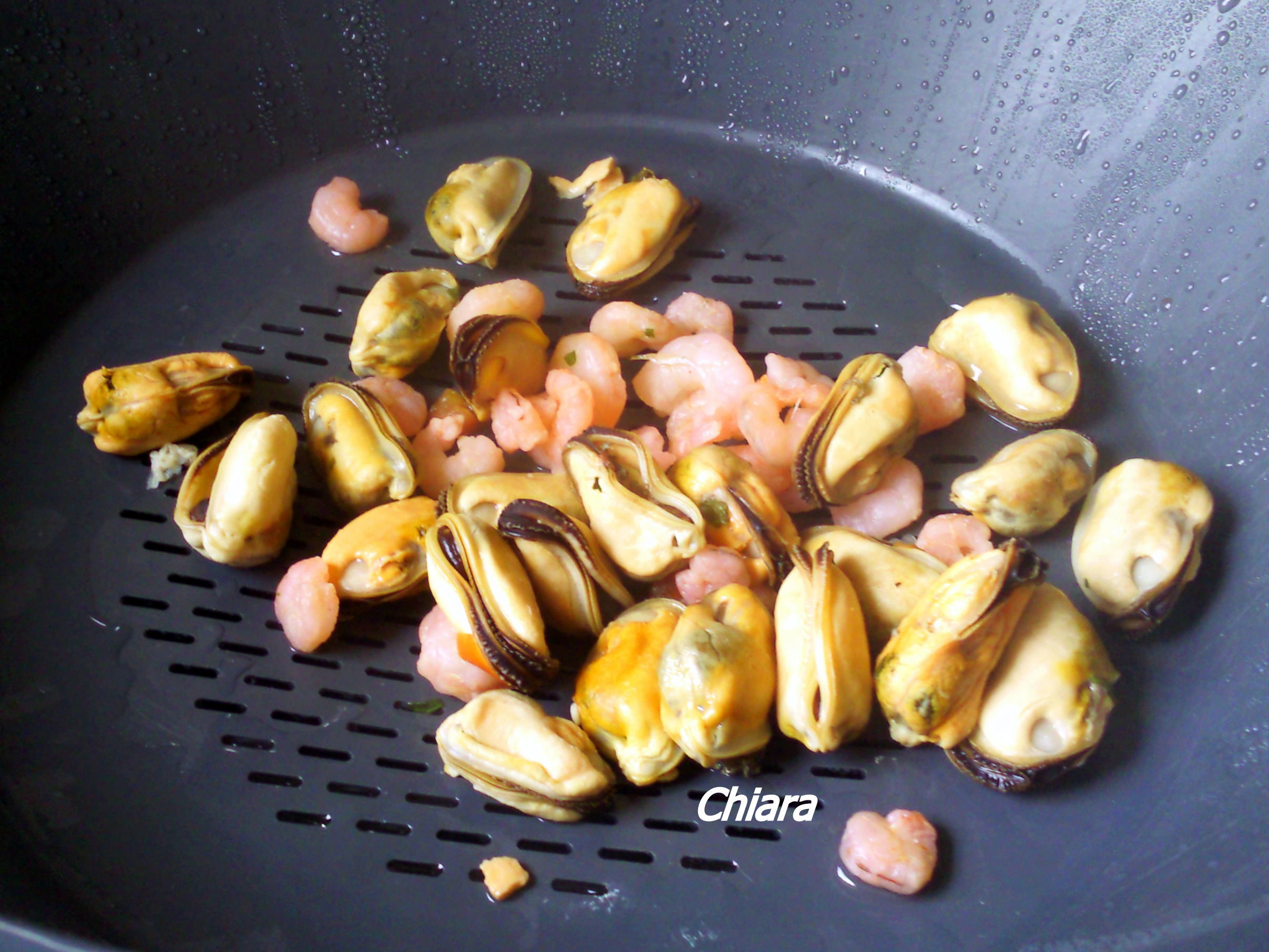• 300 gr di frutti di mare (gamberetti sgusciati, cozze, vongole) scongelati