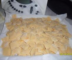 11. Stendere la pasta e fare i ravioli ripieni di zucca, io ho usato la raviolatrice;