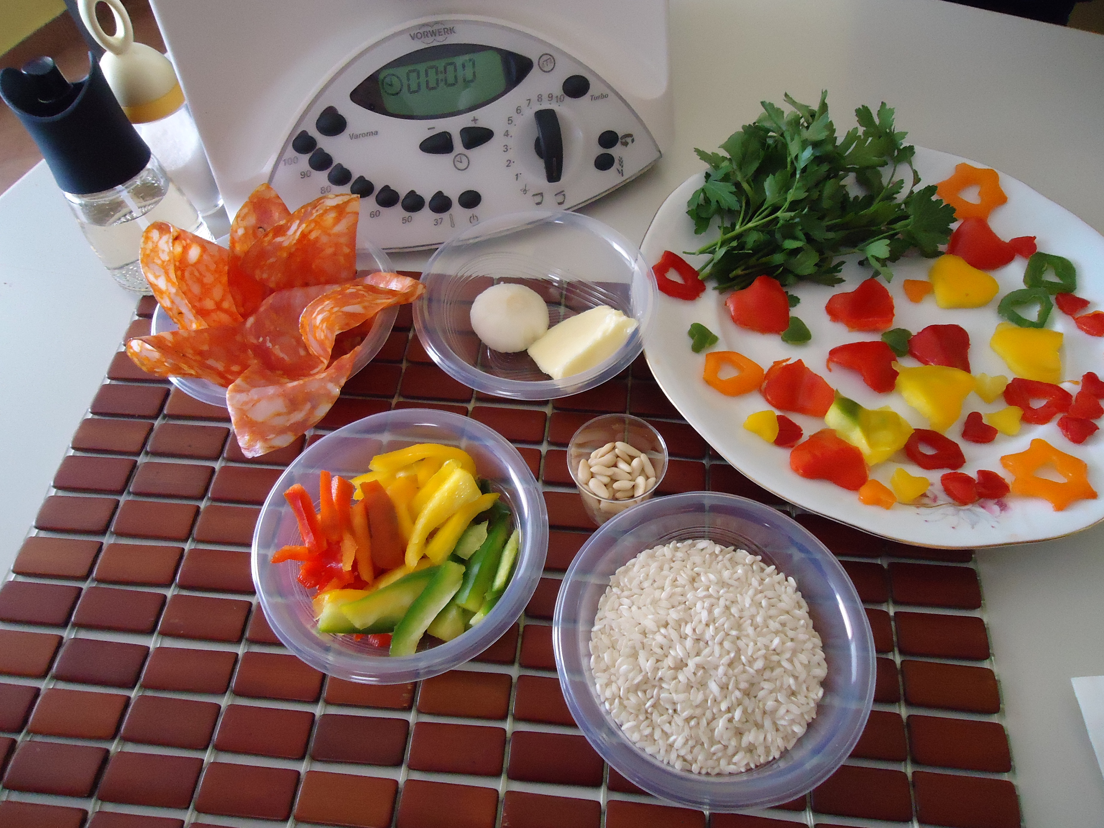 - • 1 peperone verde (1/2 nel risotto a listarelle 1/2 per decorare)