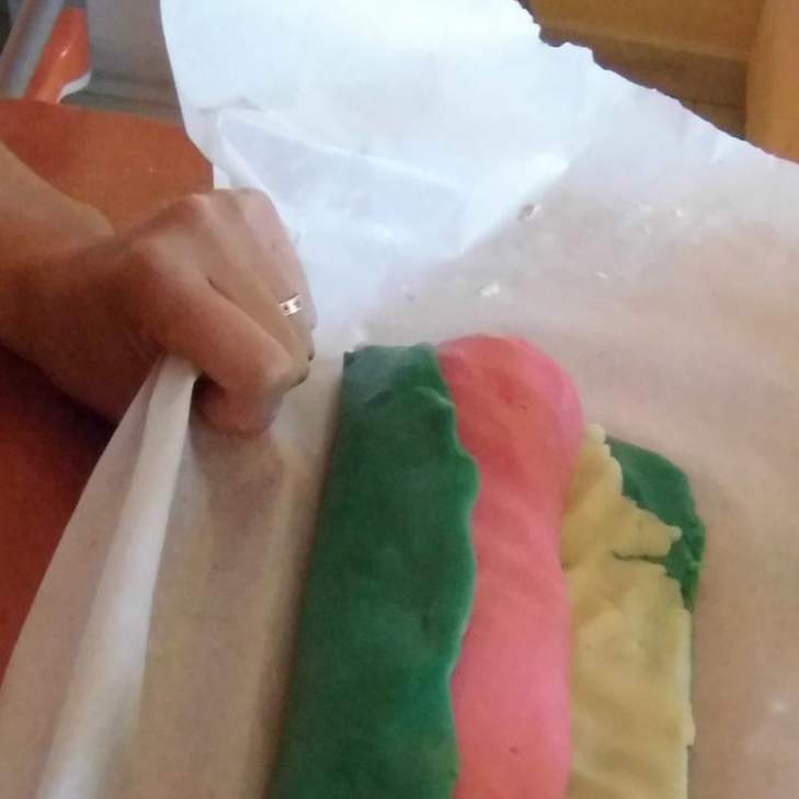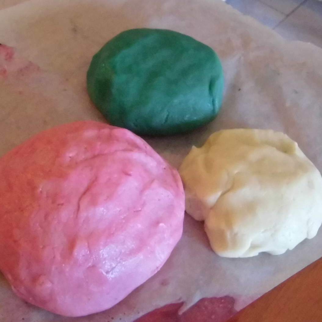 Poi con la mia ostinazione nel voler utilizzare solo coloranti naturali ho utilizzato degli spinaci per il verde, ed è andato tutto benissimo, ma la fragola (per il rosso) in cottura si è "scurita", uff...
