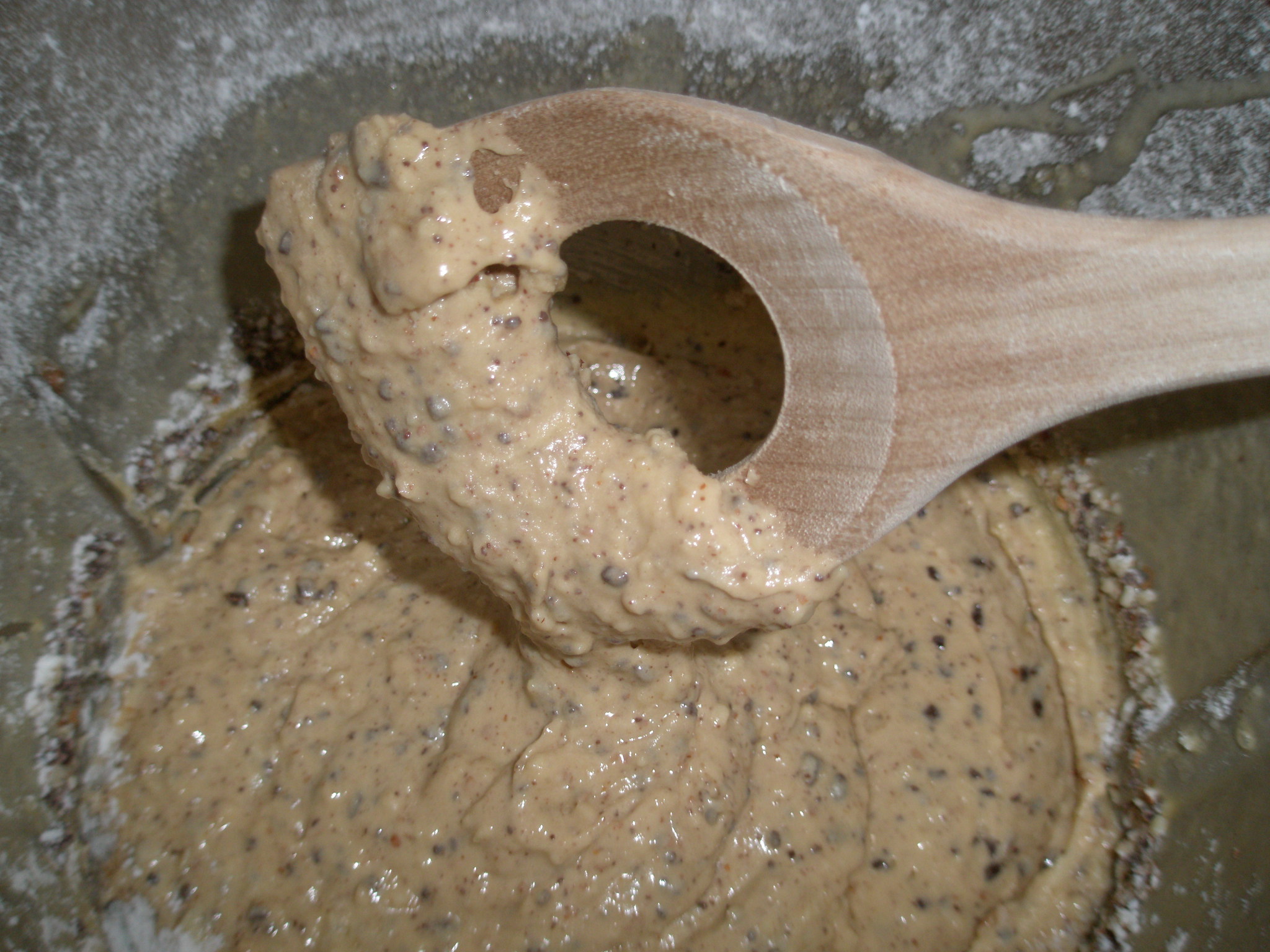 "coperchio chiuso" il trito di cioccolato e mandorle: 15 sec vel 4.L'impasto deve risultare abbastanza denso ma se risultasse troppo "duro" aggiungere qualche cucchiaio di latte.