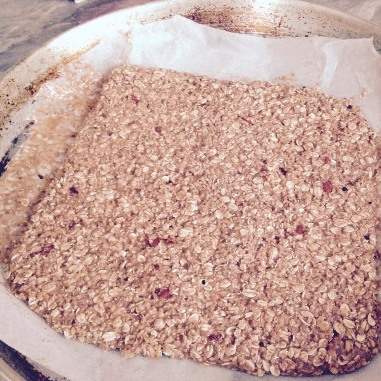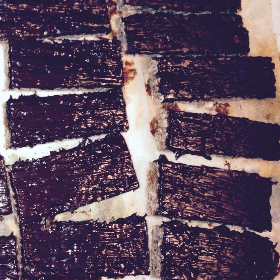 sciogliere del cioccolato fondente a bagno maria e spennellare , fare raffreddare in frigo e tagliare in barrette di dimensione a piacere, considerate che sono delle belle bombette energetiche..!!!
