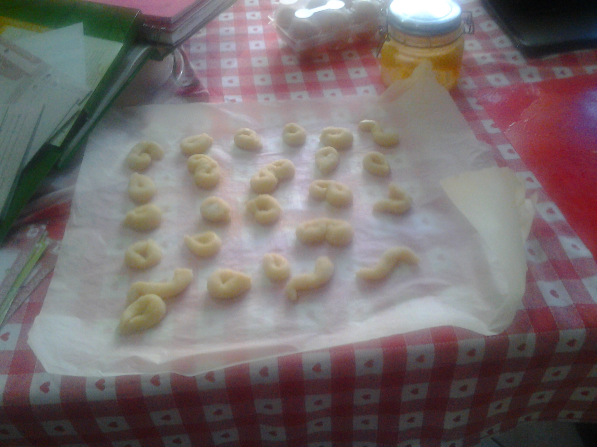 "velocità spiga" lasciar riposare la pasta in frigo per 15' avvolta in pellicola. Riprenderla e formare dei rotolini e poi chiuderli a cerchio o come si vuole passarli in una ciotola piena di zucchero bianco andagiarli in una teglia coperta di carta forno e infornare in forno preriscaldato a 180° per 15-20'.sono davvero ottimi uno tira l'altro