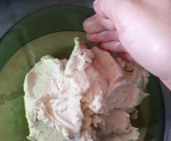 5) Togliere l'impasto dal boccale e dividere in 3 parti uguali da riporre in 3 ciotole diverse. Nella prima aggiungere 50 gr. di scaglie di cocco; nelle altre due aggiungere in ognuna 50 gr di farina. - 6) Mettere le 3 ciotole coperte con pellicola in frigorifero per almeno 1 ora (foto).
