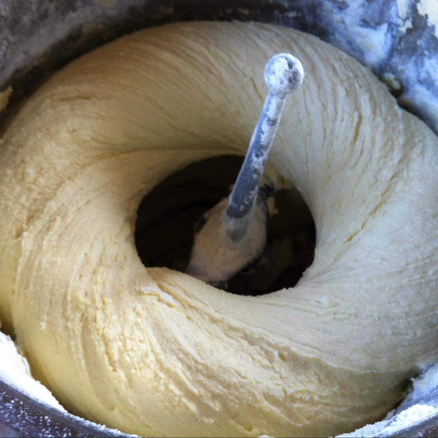 Raccogliere l'impasto con una spatola e mettere la farina setacciata ( se mettete il lievito setacciatelo con la farina) e lavorare per 20 sec. vel. 3 \4.