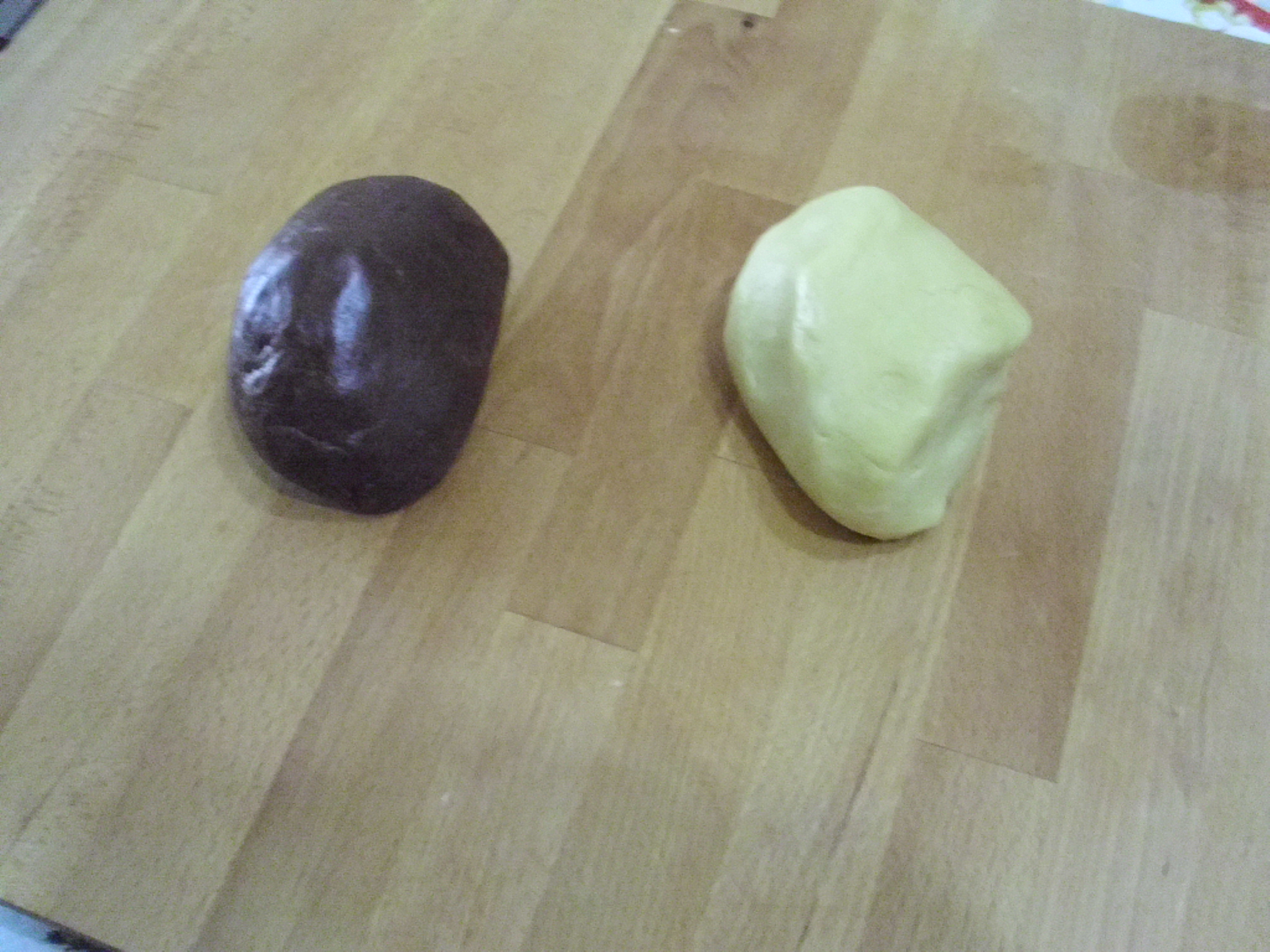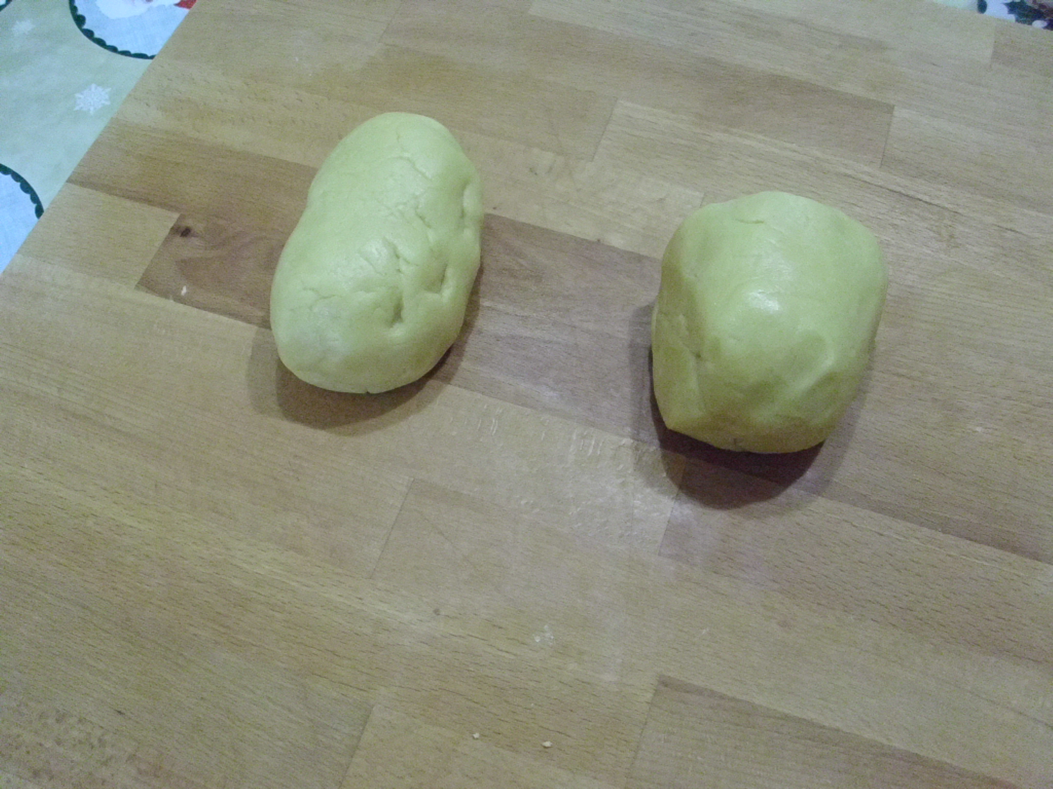 "coperchio chiuso" e appoggiarlo sul tavolo da lavoro dove lo lavorerete ancora un po' a mano farmando così un bel panetto, che poi dividerete in ancora in 2 panetti dello stesso peso. Prendete uno dei panetti rimettetelo nel