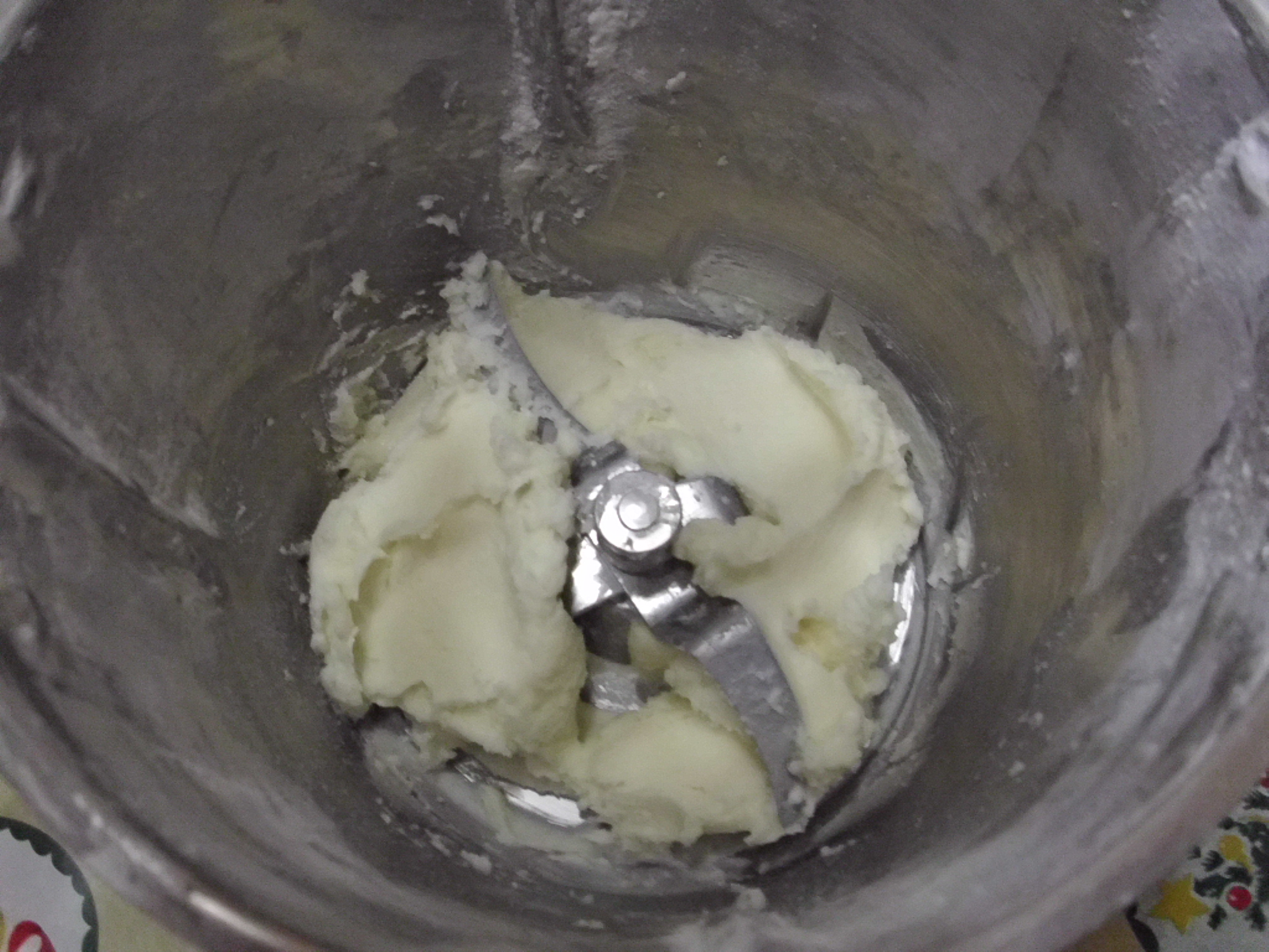 "coperchio chiuso" aggiungete lo zucchero a velo ( io ho usato lo zucchero confezionato x fare prima) ,lavorare20"vel.5 raccogliere il tutto sul fondo del