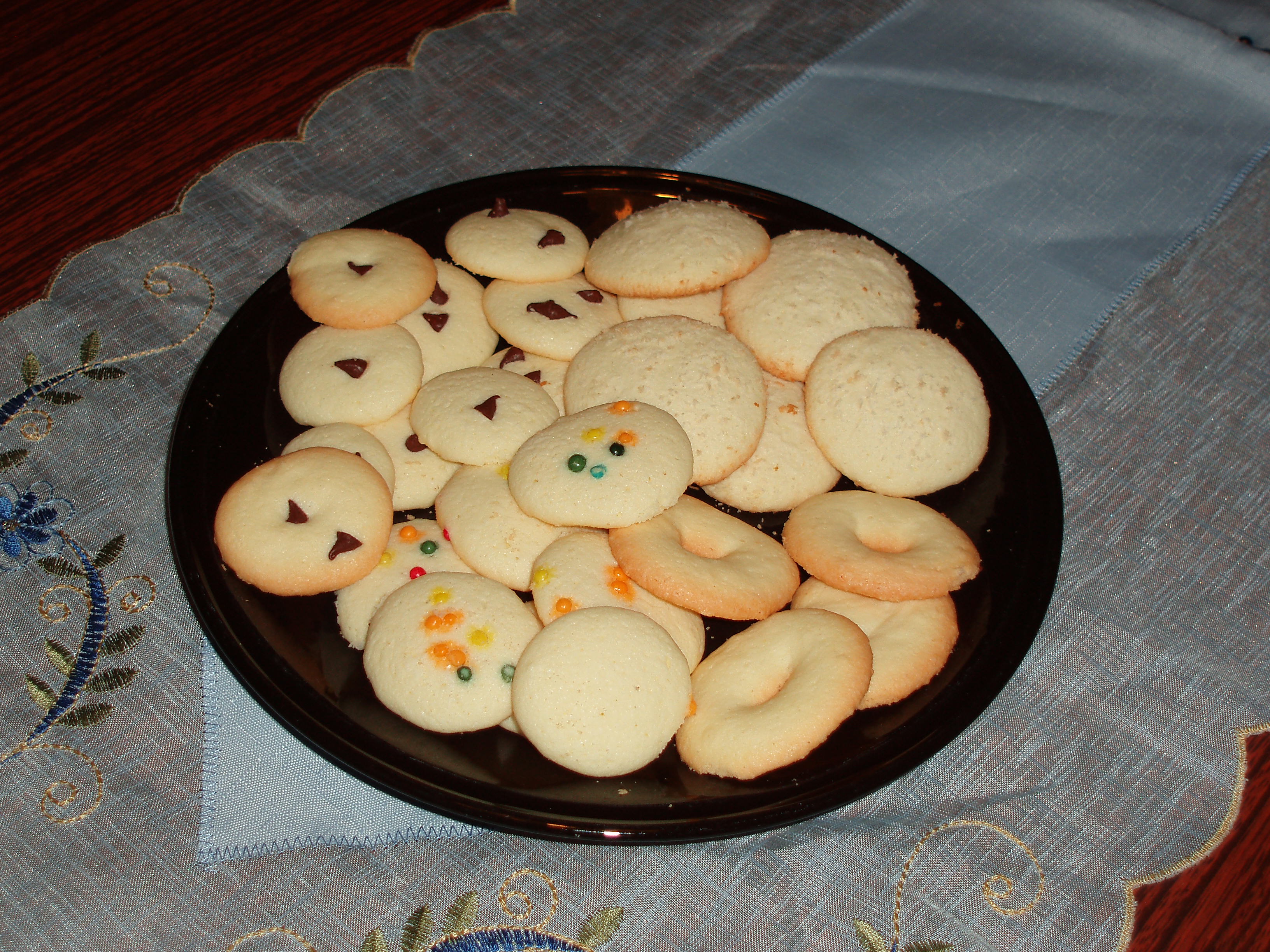 Mettere l'impasto ottenuto nella siringa per dolci e dare la forma preferita, tenendo conto che durante la cottura i biscottini si appiattiscono perdendo le eventuali scanalature del beccuccio.