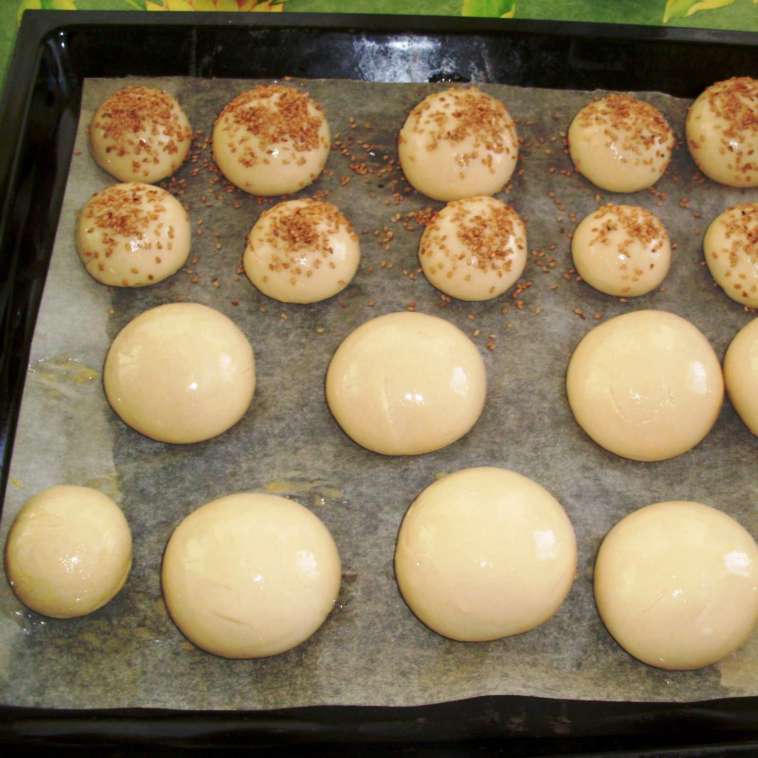Formare delle palline lasciare lievitare, quando hanno raddoppiato il suo volume spennellare con uovo (intero)