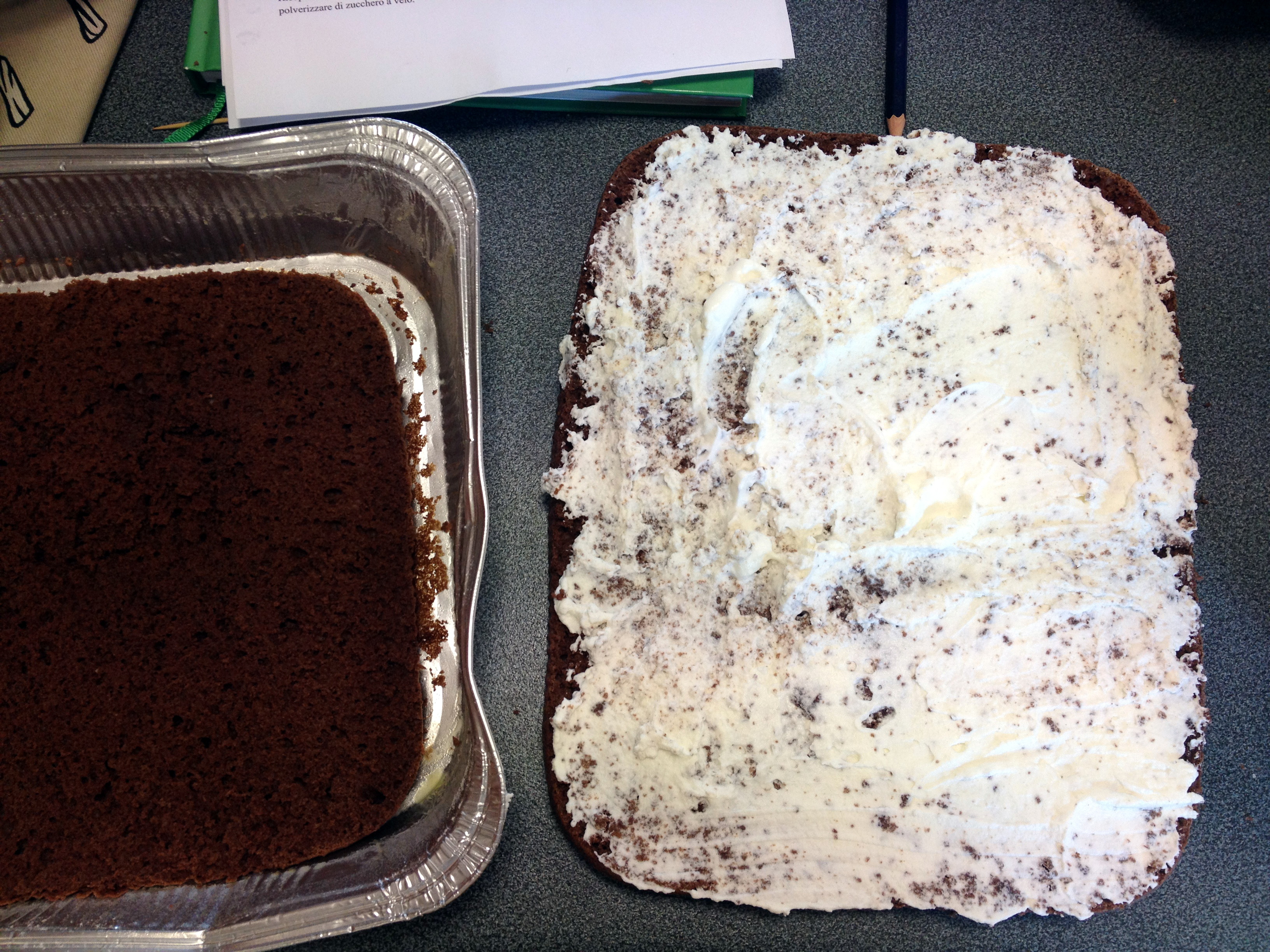 6. Una volta che la torta sarà fredda, tagliarla a metà e farcire spalmando su una metà