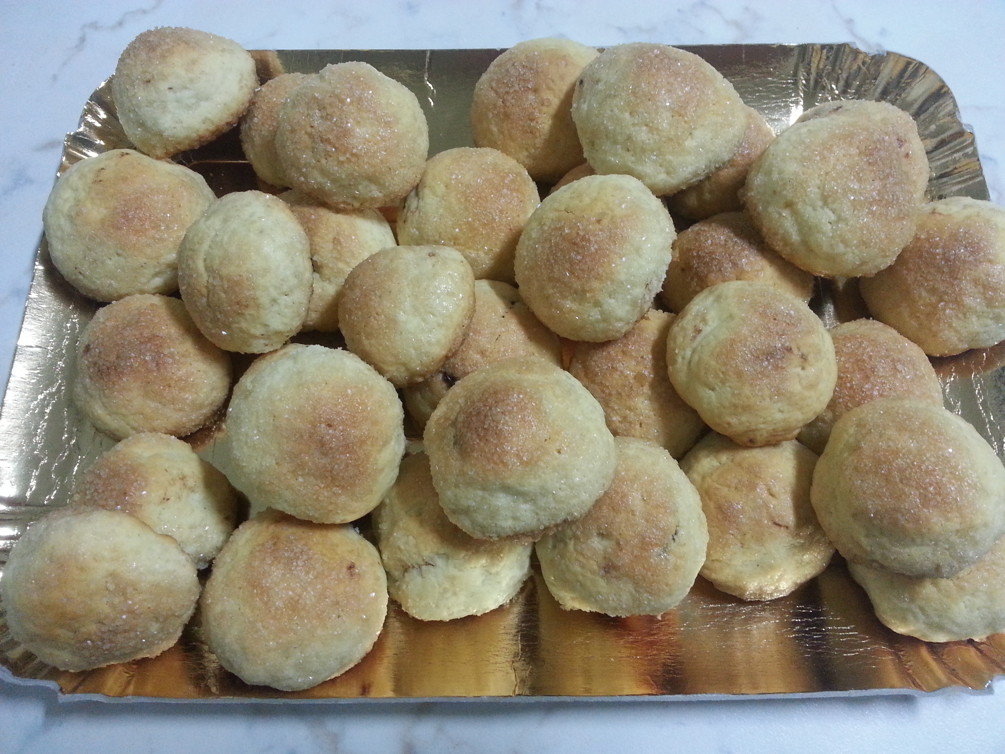 Rotolarle nello zucchero di canna e disporle nella teglia con carta forno.