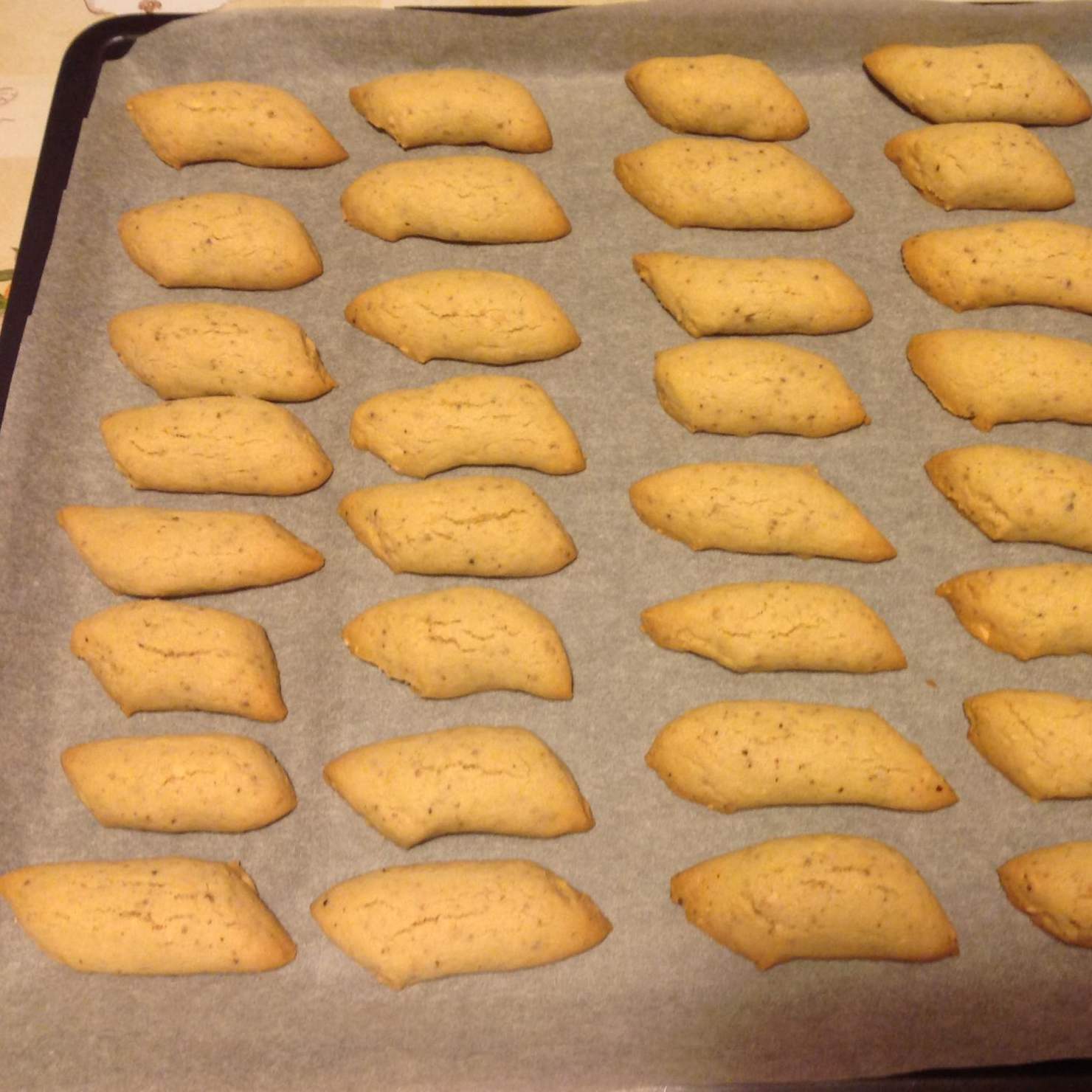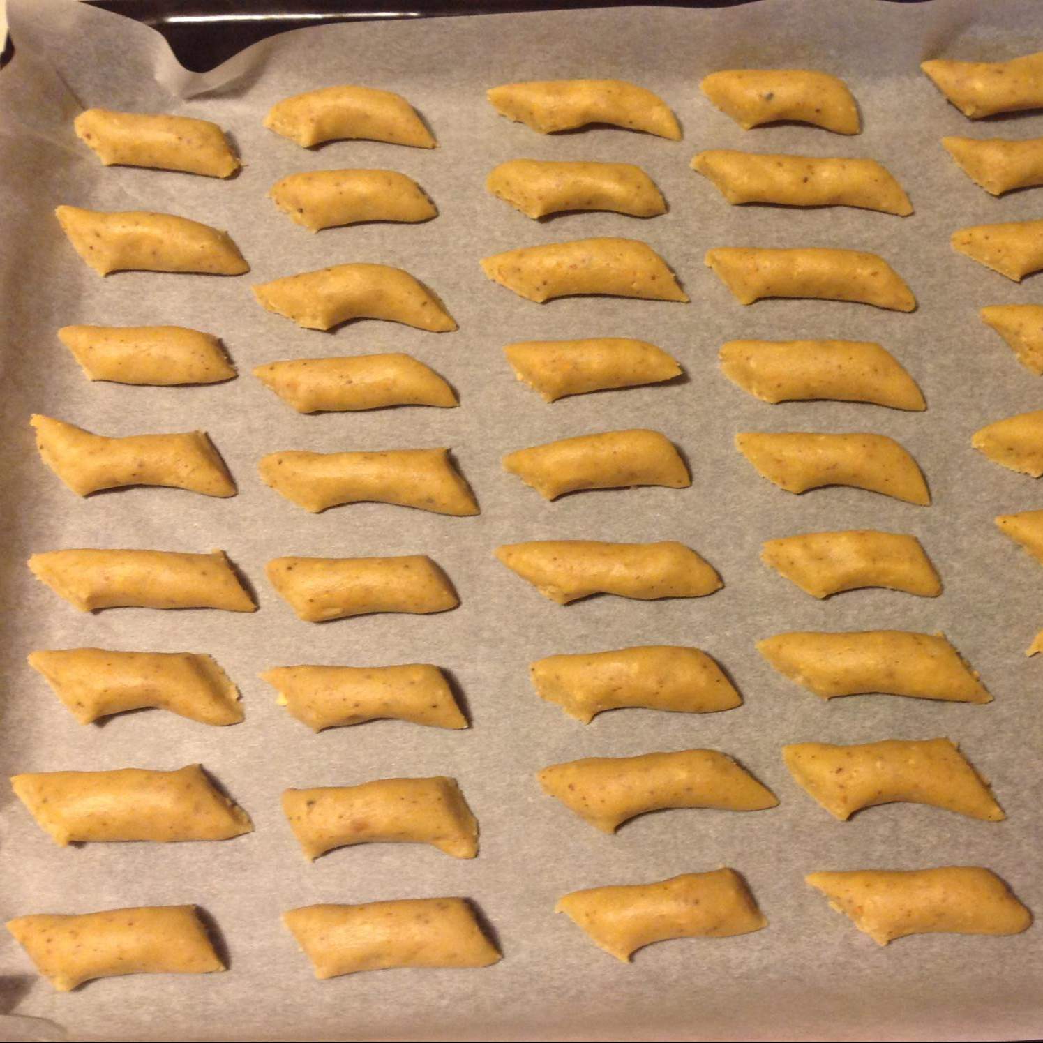Prendere l'impasto ottenuto e continuare a lavorarlo con le mani se necessario e iniziare a lavorare la frolla formando delle mezzelune a tocchetti dello spessore di un dito e mettere i biscotti ben distanziati sul placca del forno ricoperta di carta oleata.
