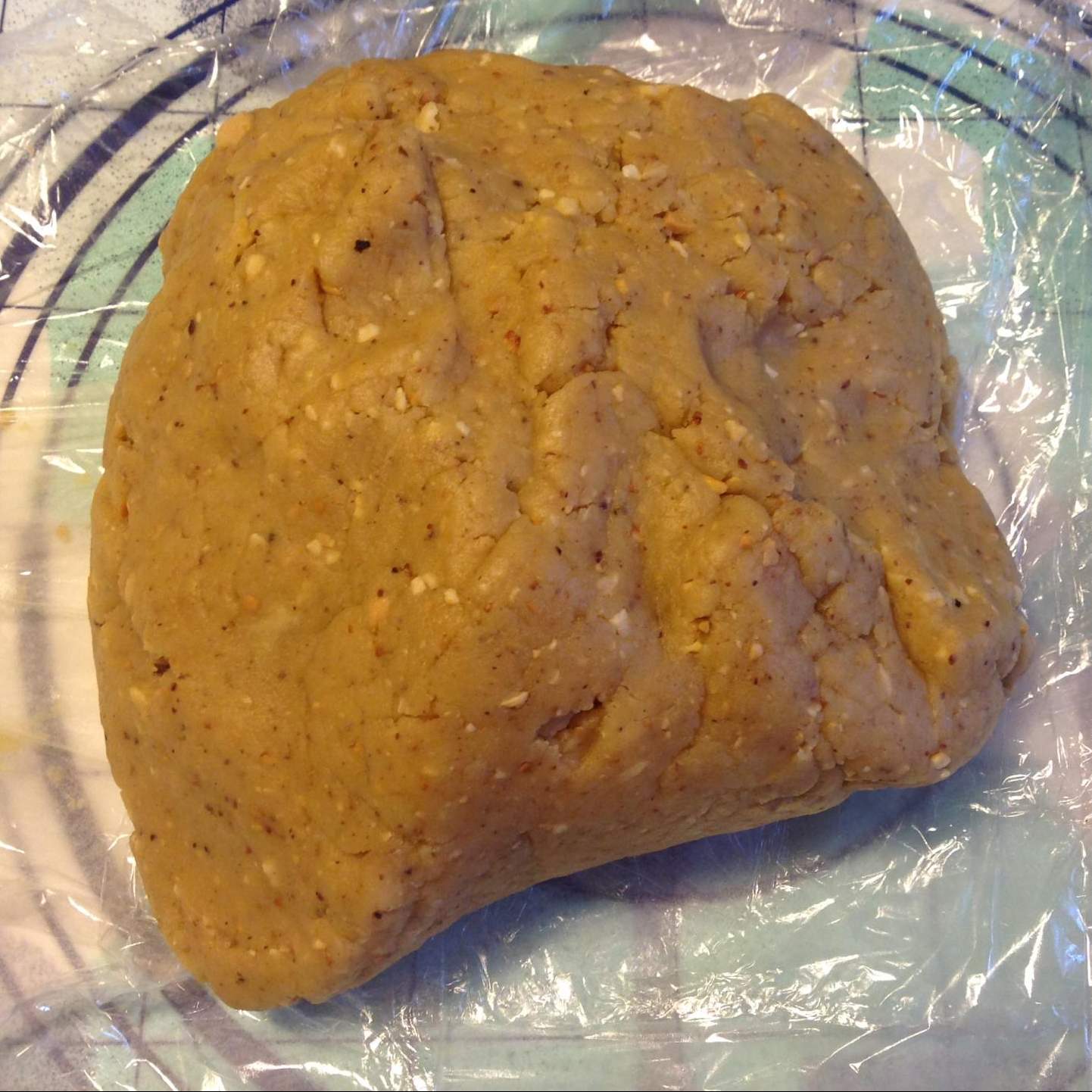 Unire il lievito, la cannella, la granella (dorata in precedenza), il brandy ( poco alla volta q.b.) e la farina (poco alla volta) 1 min. vel.5.
