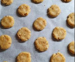Formare delle palline di circa 2 cm e mezzo di diametro e appiattirle un po' e sistemarle nella teglia su carta forno.