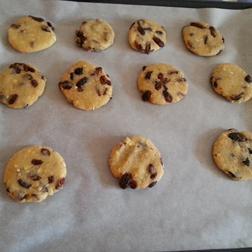 Riscaldare il forno a 190° , ricoprire due teglie con carta forno e mettere in ammollo l'uvetta.