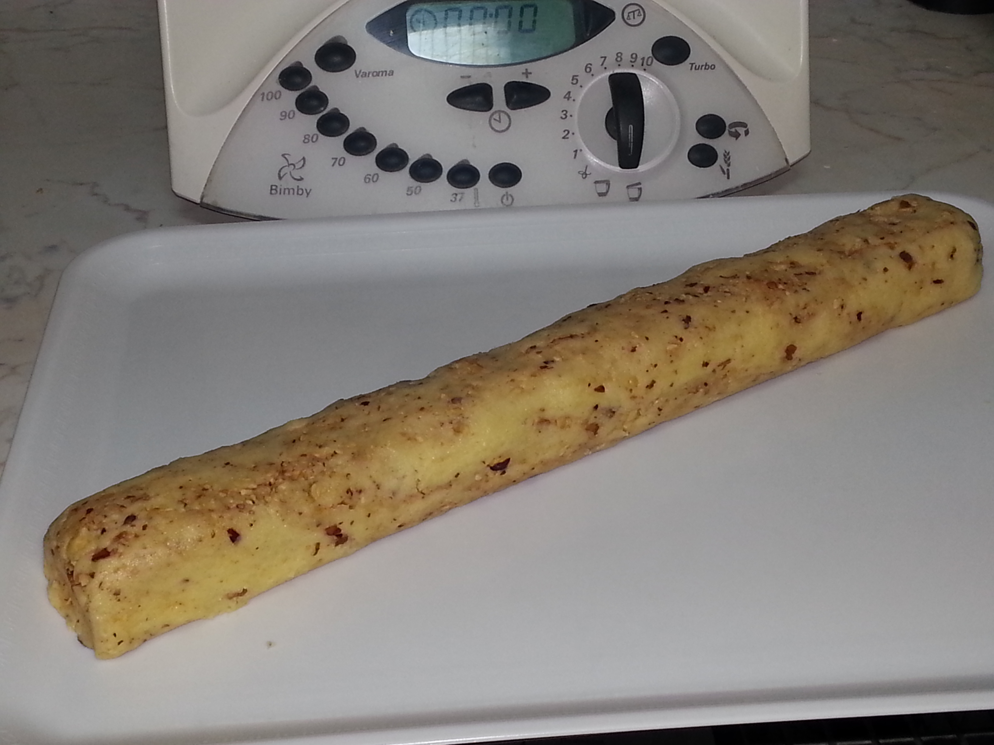 Formare un rotolo di circa 5 cm di diametro e mettere in frigo per 15 min.circa.