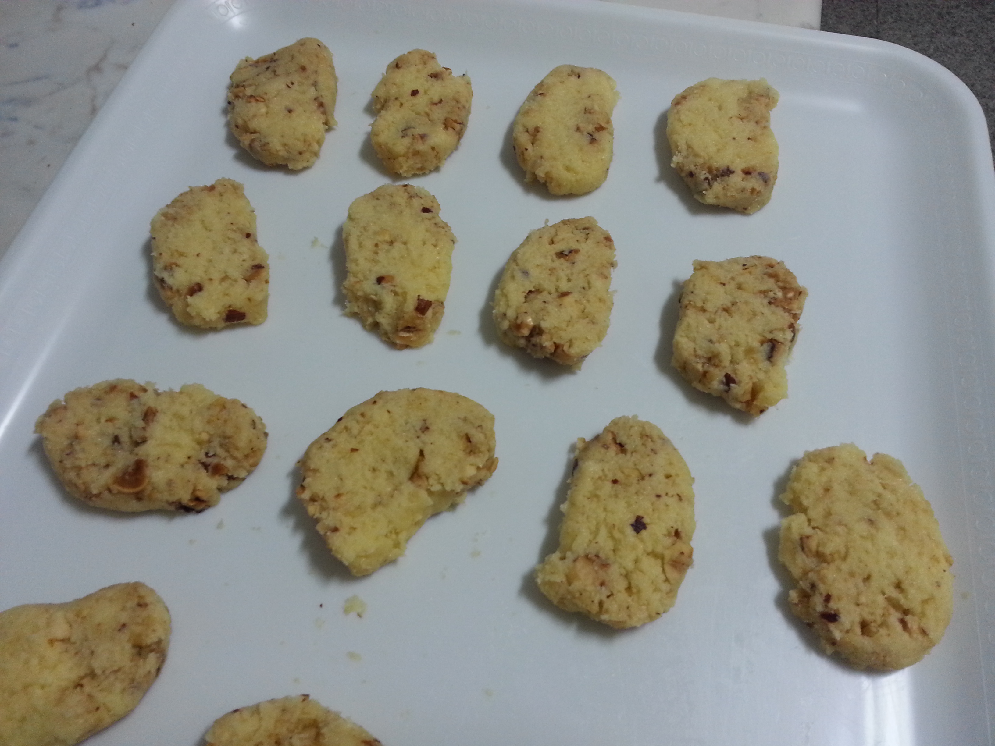 Tagliarlo a pezzi da mezzo cm e disporre i biscotti ottenuti in una teglia con carta forno distanziati fra loro.