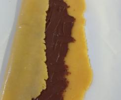 Stendere ogni pezzo con il mattarello in una striscia rettangolare di spesso di qualche millimetro e spalmare sopra la marmellata o crema di nocciole.
