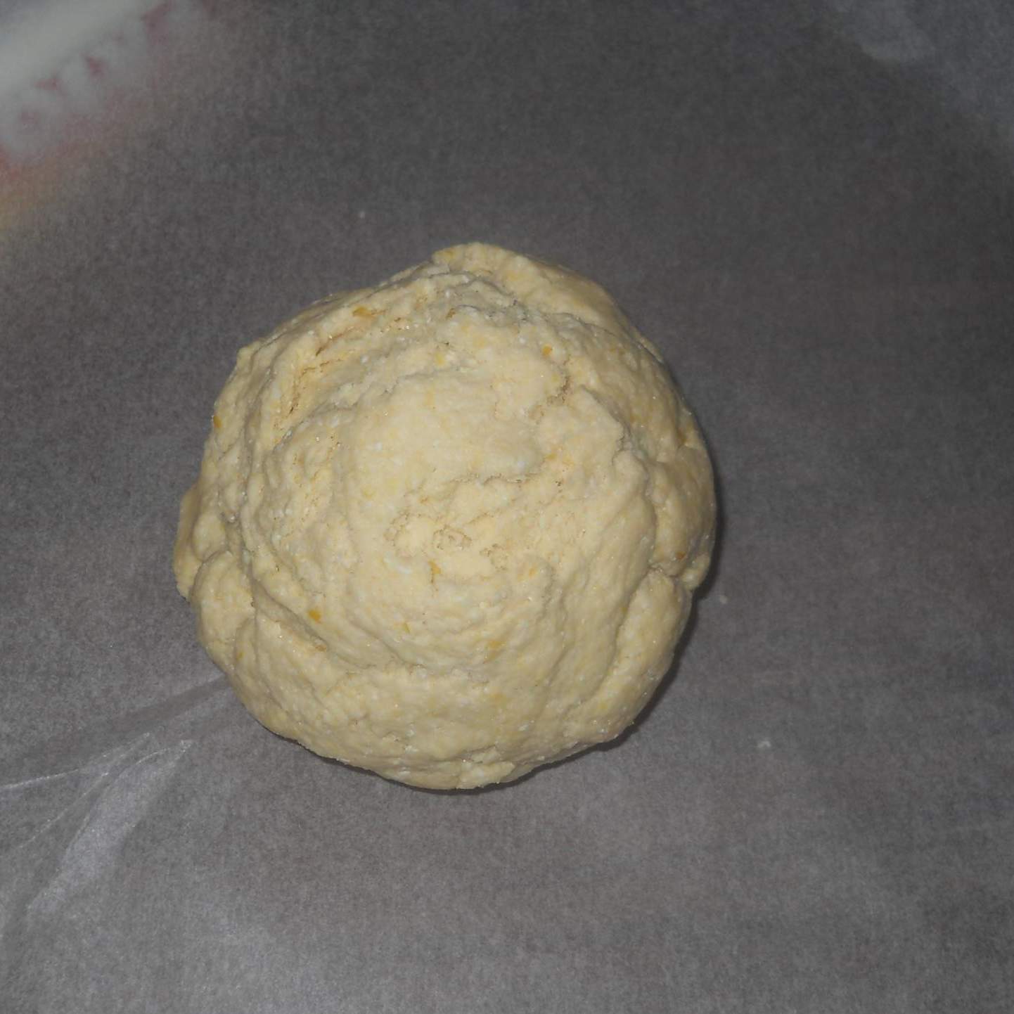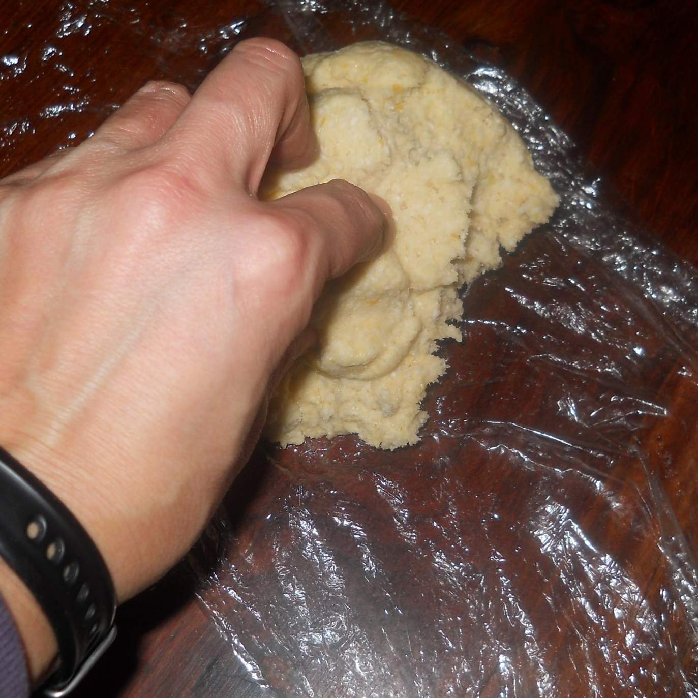 Otterete questo impasto che metteremo su un piano di lavoro e formerete una palla poi la coprirete con pellicola e fate riposare in frigorifero per una mezzora prima del suo utilizzo
