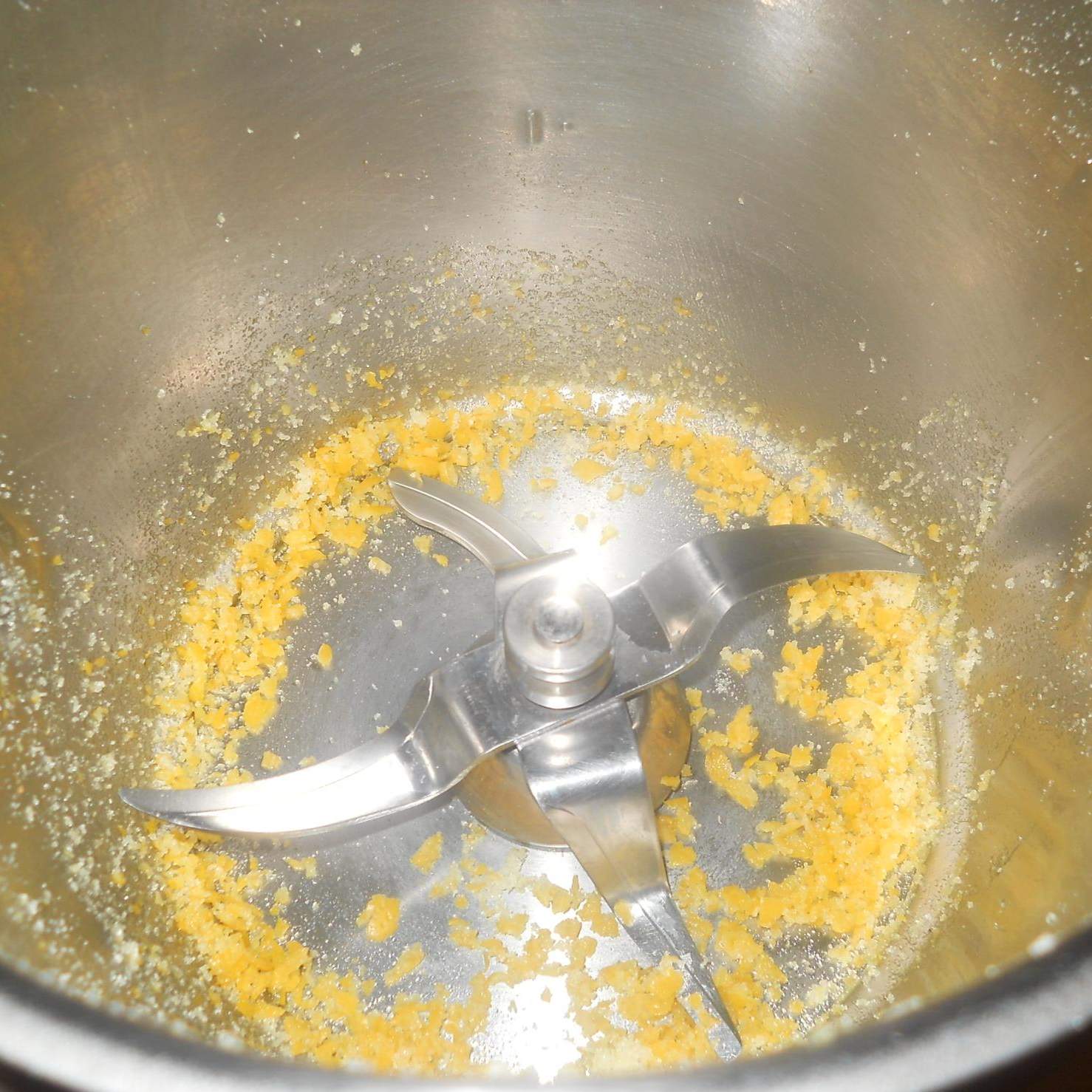 "coperchio chiuso" la buccia di limone solo parte gialla con un cucchiaio di zucchero e trittare per 10 Sec Vel 8/9 e riunite con la spatola