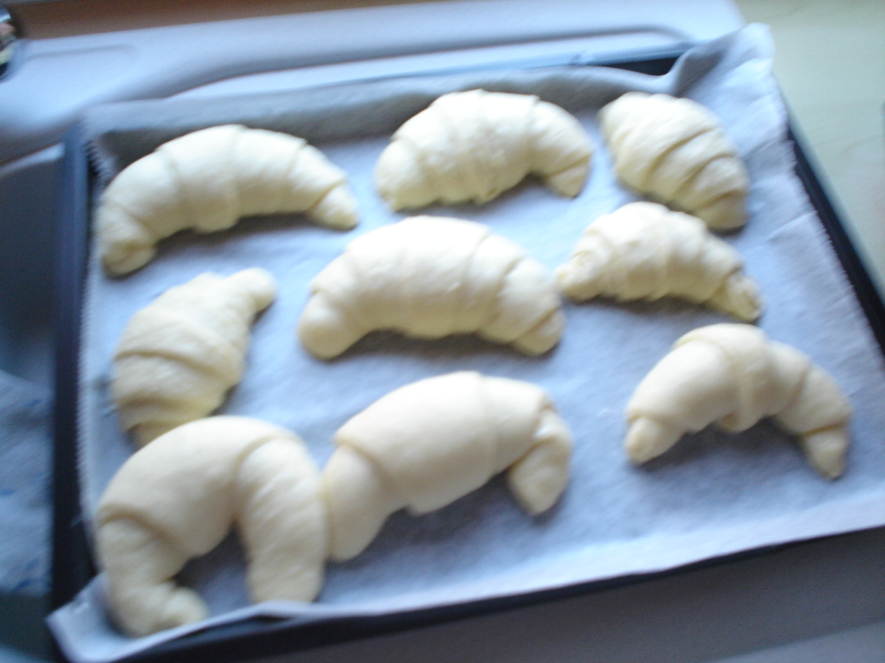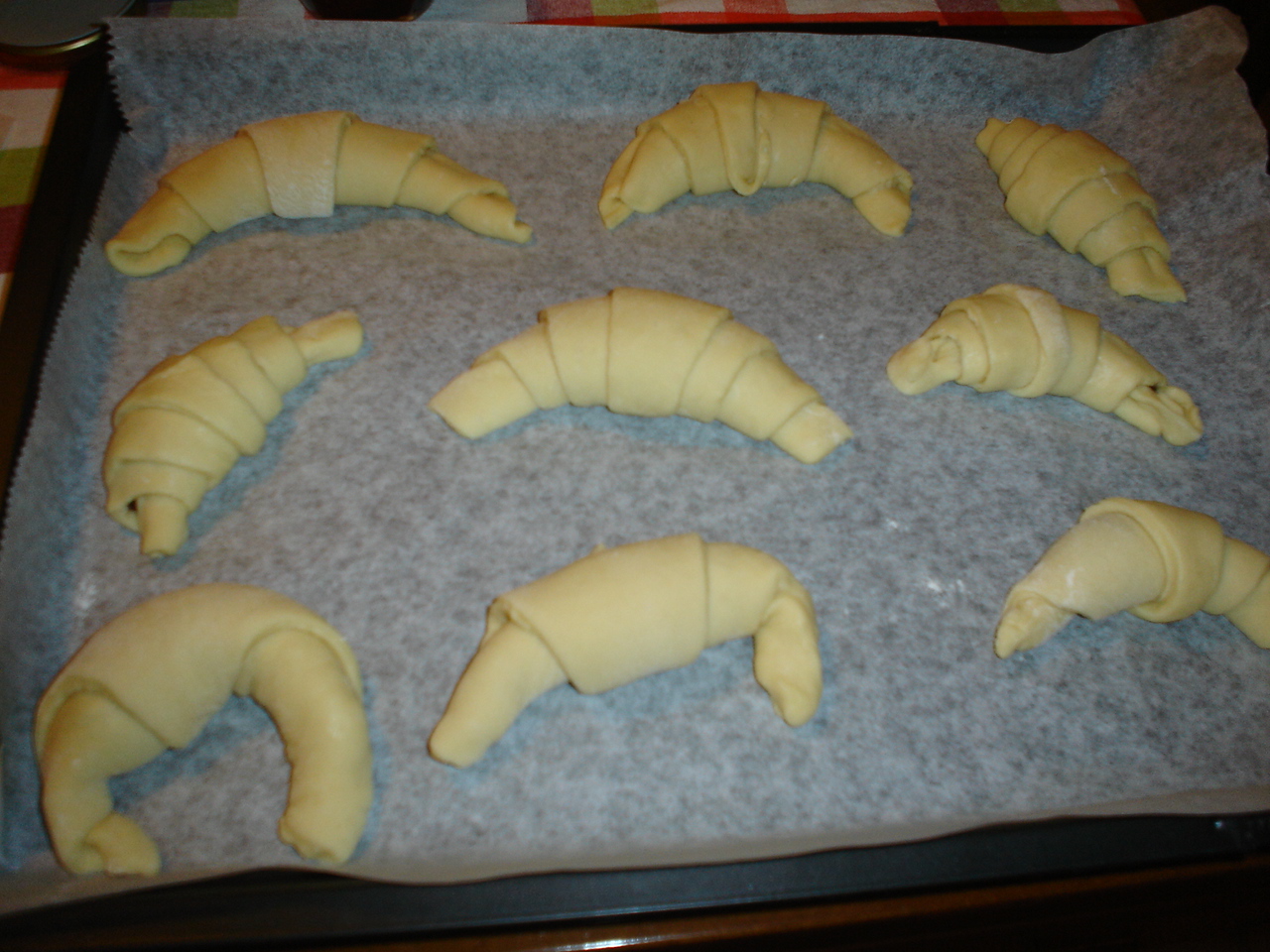 Passato questo tempo, formare le brioche tirando l'impasto su una spianatoia cosparsa di farina per poter agevolmente spianare e arrotolare i cornetti. Se piace farcirli con un cucchiaino di marmellata, crema, cioccolato o lasciarli naturali.