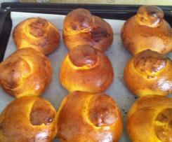 - Spennellare le brioches con un mix di tuorlo e di latte, e lasciar riposare per altre 2 ore ;