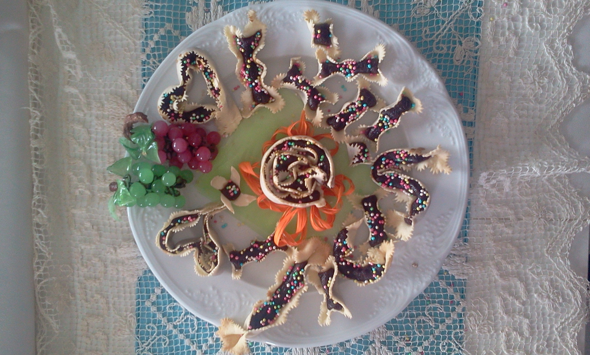 14. Sfornare le caschettas e spennellarle con qualche cucchiao di sapa diluita con poca acqua e cospargerle con le codette o i confettini di zucchero colorati.