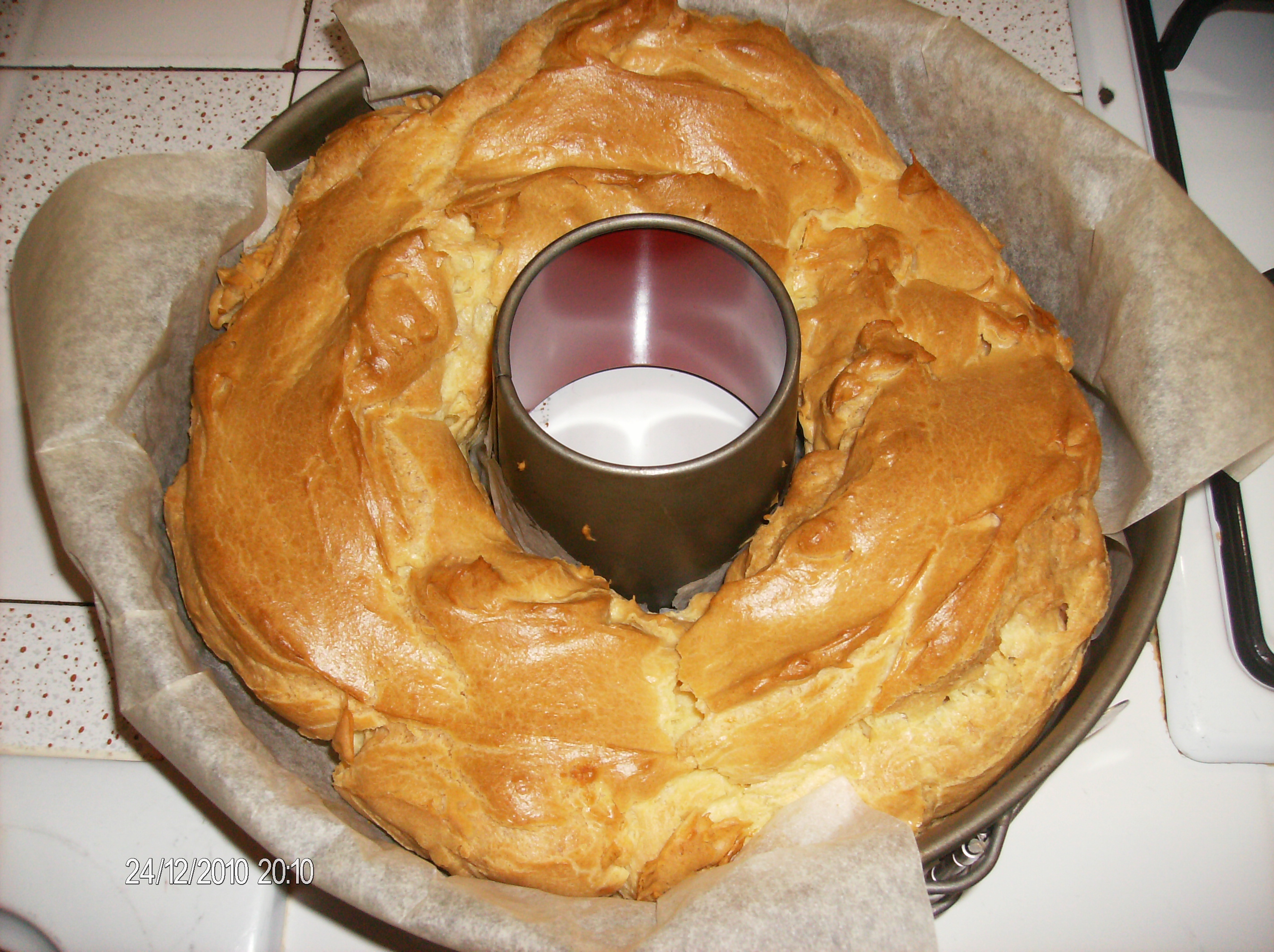 PREPARARE LA PASTA CHOUX E DUSPORLA IN UNO STAMPO AD ANELLO E FAR CUOCERE CIRCO 45 MIN. A 180°.