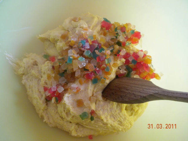 Nel frattempo inserite nel boccale (senza lavarlo) la buccia del limone, lo zucchero e polverizzate 30 sec. Vel. 9, inserite la rimanente farina, le uova, gr. 150 di burro ammorbidito, 15 sec: Vel 5/6 (dopodiché unite il latte se serve) e lavorate 2 min. Spiga. Con lame in movimento incorporate dal foro del coperchio il panetto lievitato a tocchetti e rilavorate 2 o 3 min. a spiga con l’aiuto della spatola. Otterrete un impasto morbido ed elastico. Travasatelo per la lievitazione in una grande ciotola che coprirete e metterete a lievitare nel forno (leggermente intiepidito) per diverse ore (5/6 ore), finche il volume sarà più che raddoppiato. Con l’aiuto di un cucchiaio di legno o ungendovi le mani rimestando con energia incorporate i canditi o gocce di cioccolato.(Consiglio di dividere l'impasto in due ciotole capienti così potrete fare una colomba con i canditi e una con le gocce di cioccolato)