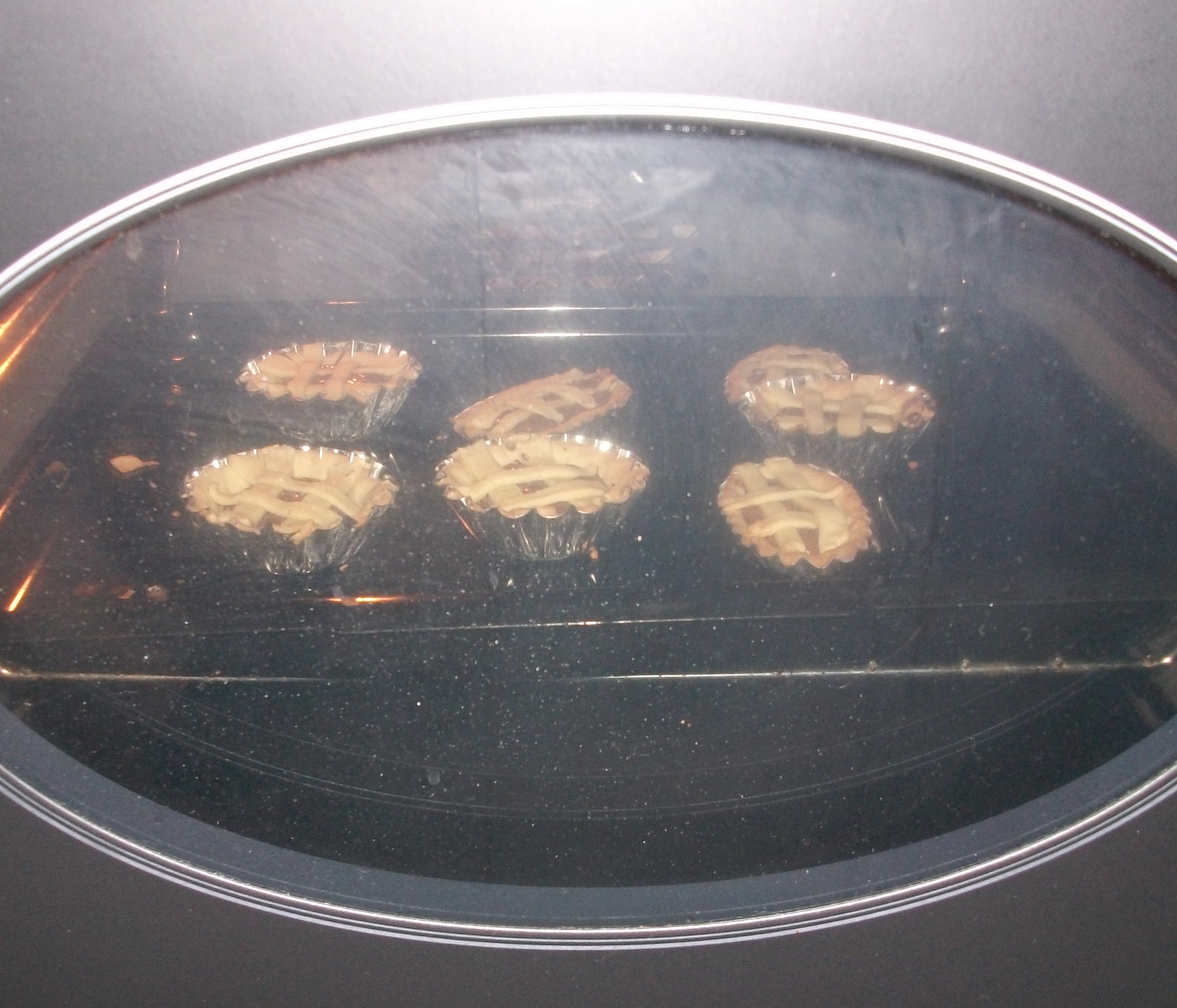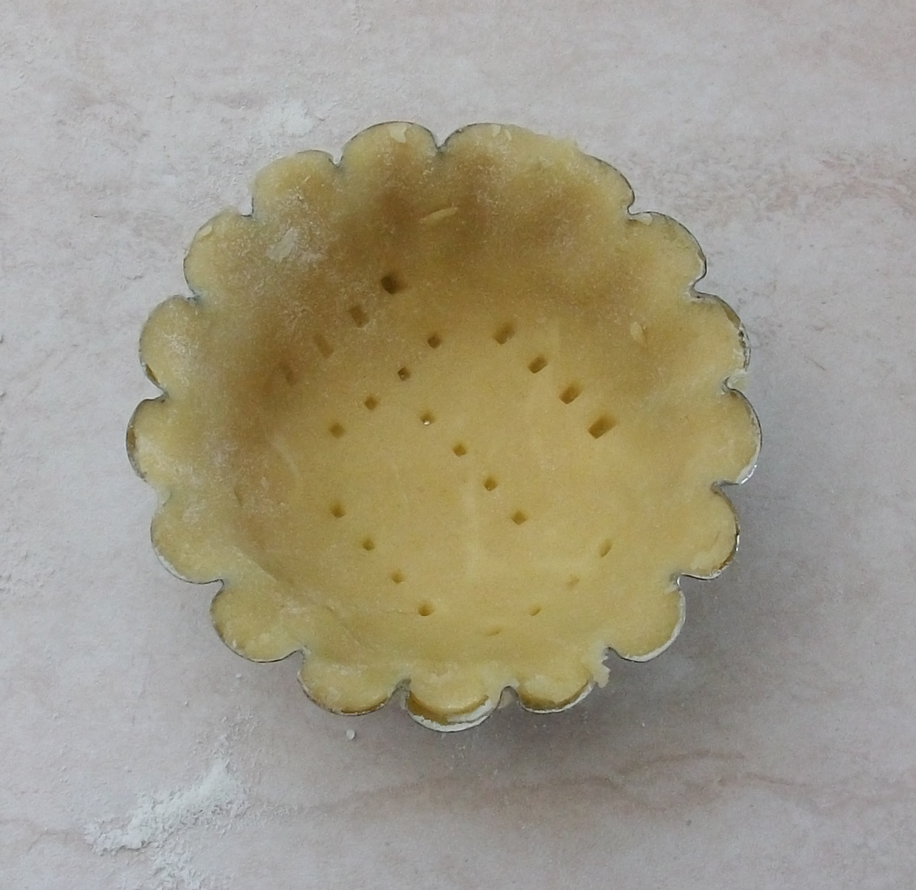 "velocità spiga" . Formare una palla e avvolgerla nella pellicola , porla in frigo per 1 ora.Riprendere la pasta , stenderla con il matterello, imburrare e infarinare gli stampini per crostatine ( io li avevo sia tondi che ovali) coprirli con la frolla, bucherellare il fondo per evitare che si gonfi durante la cottura, e infornarli x 10 min in forno già caldo a 180°