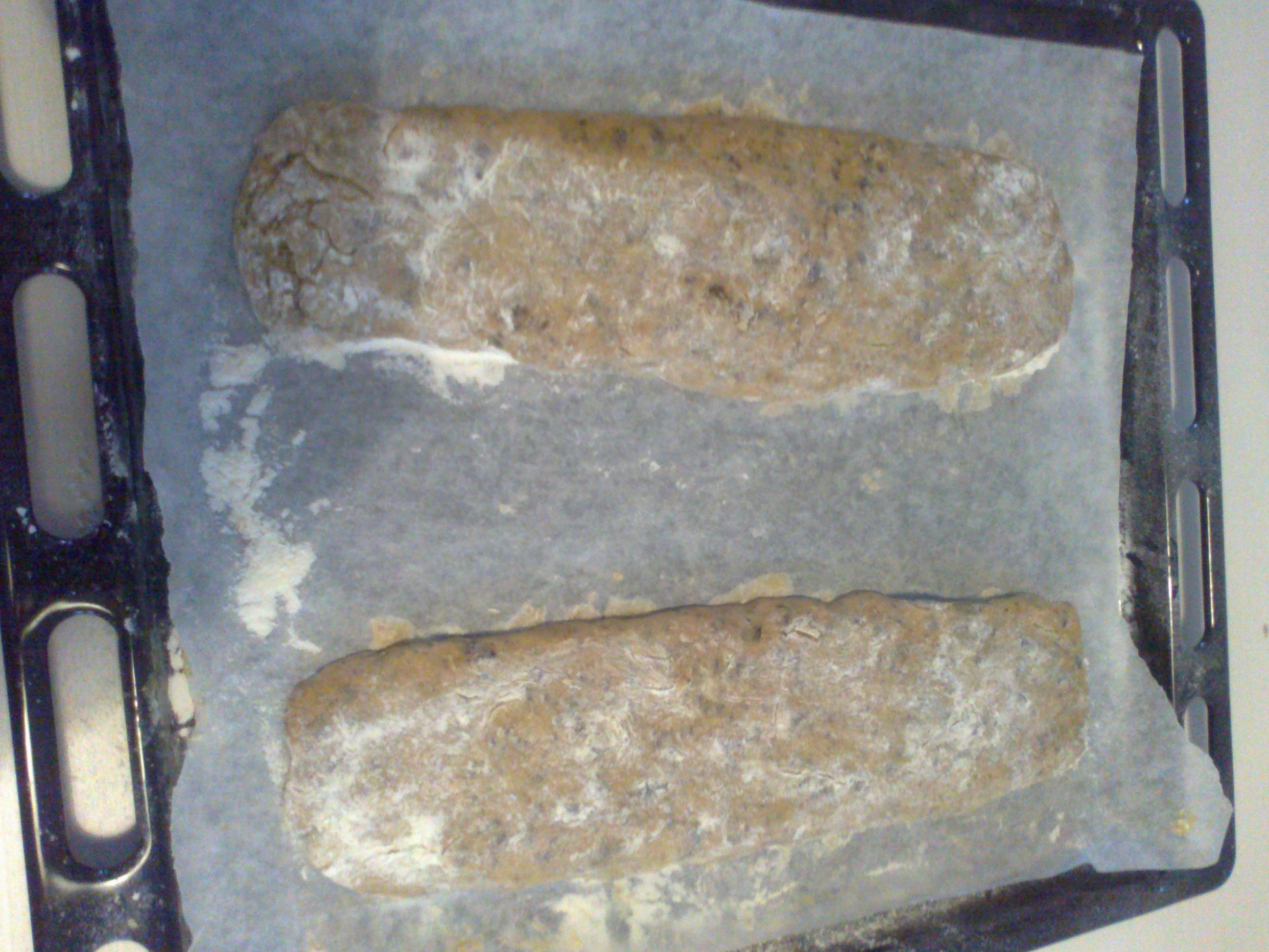 Con l'impasto formare due filoncini alti un centimetro e infarinarli bene sopra e sotto