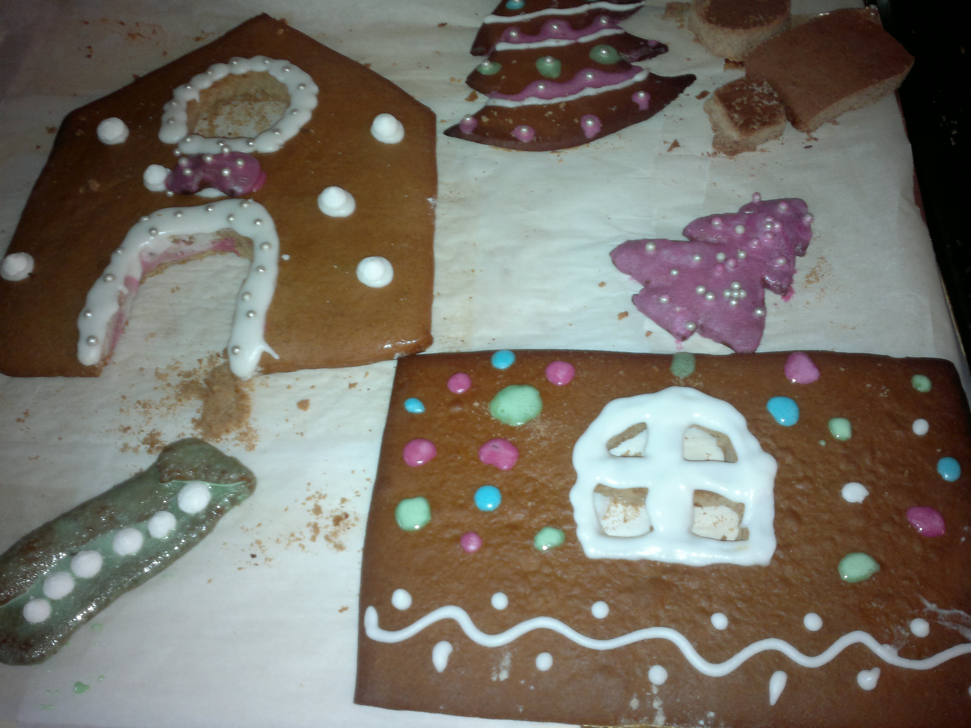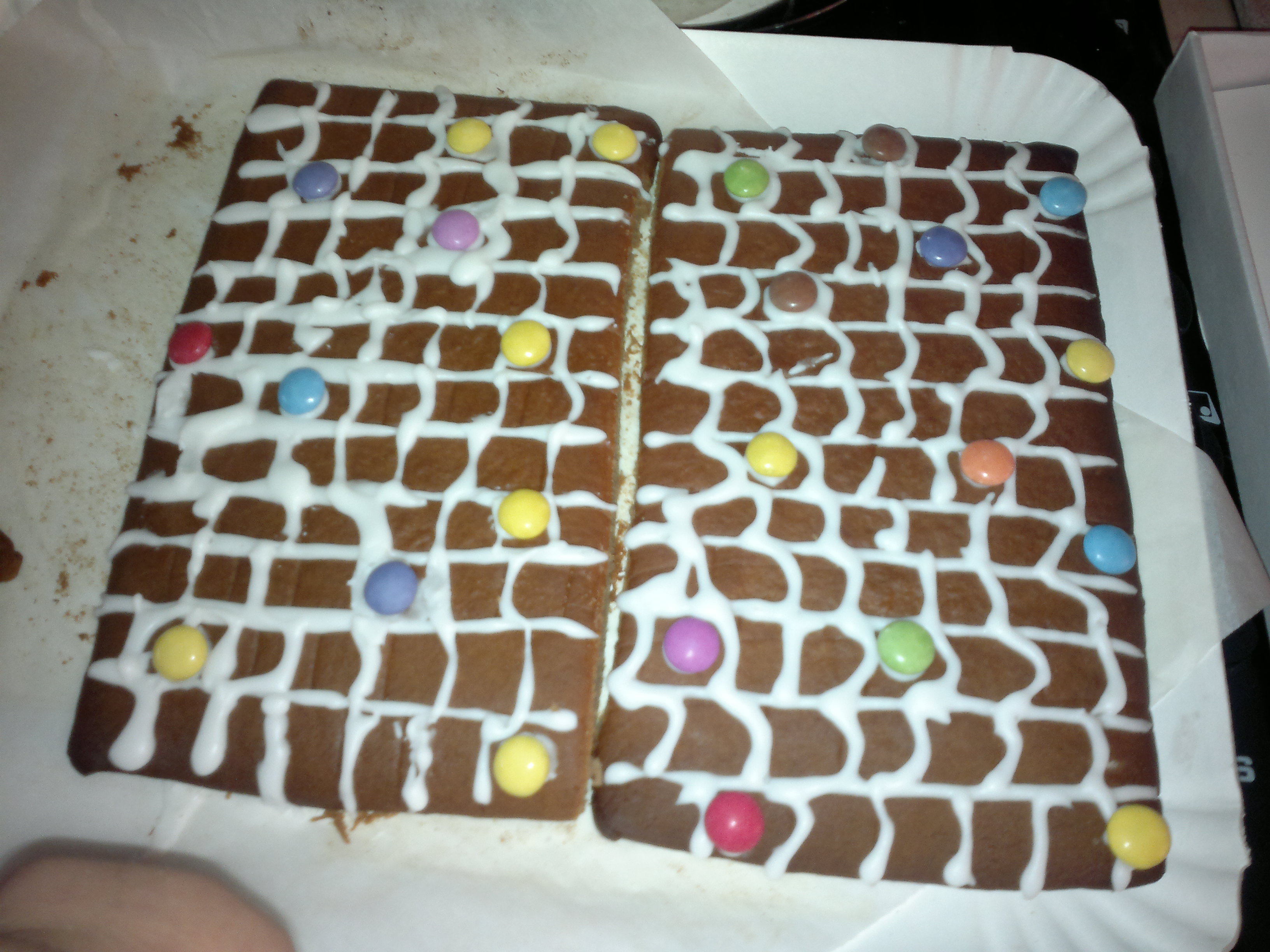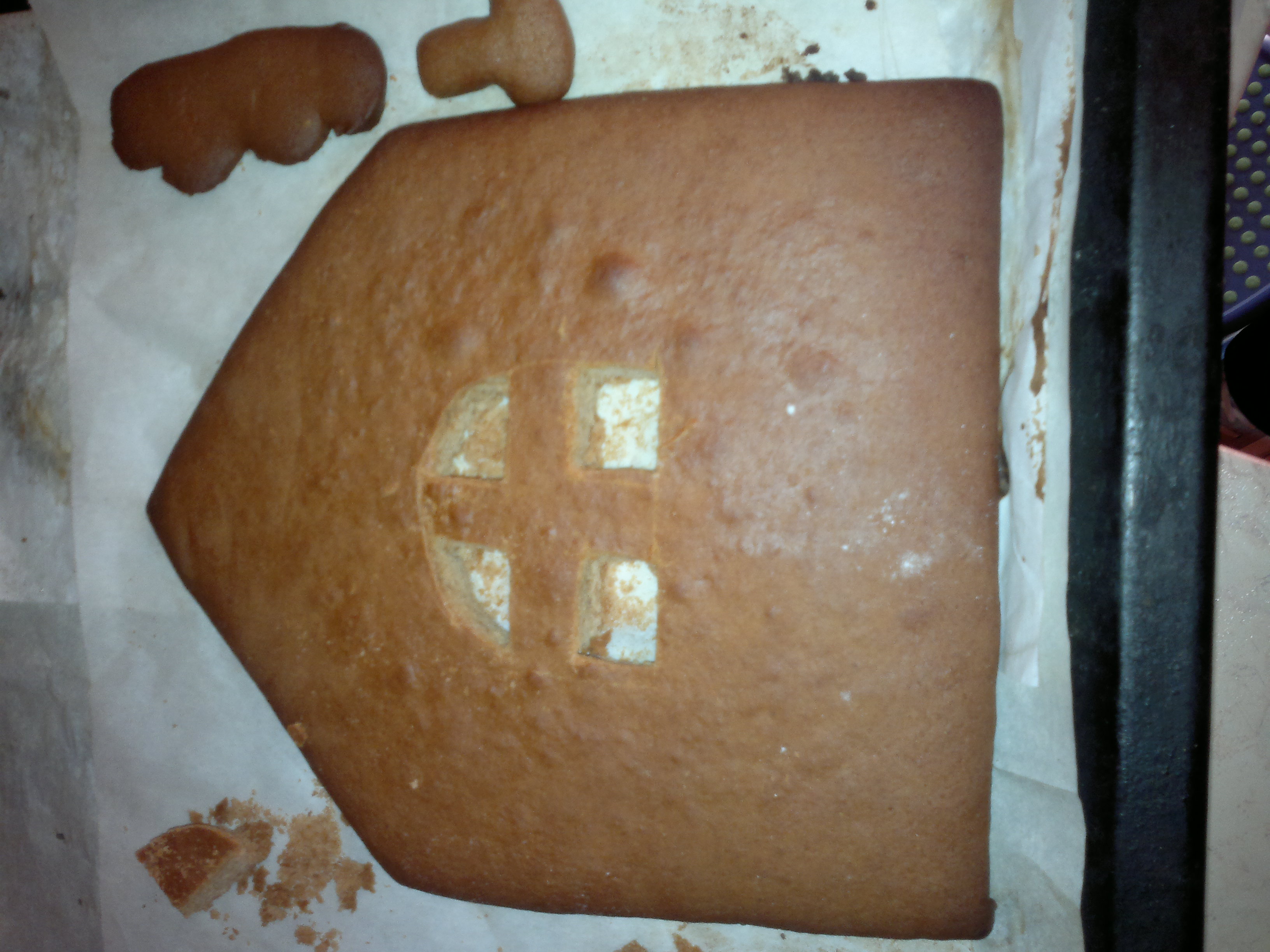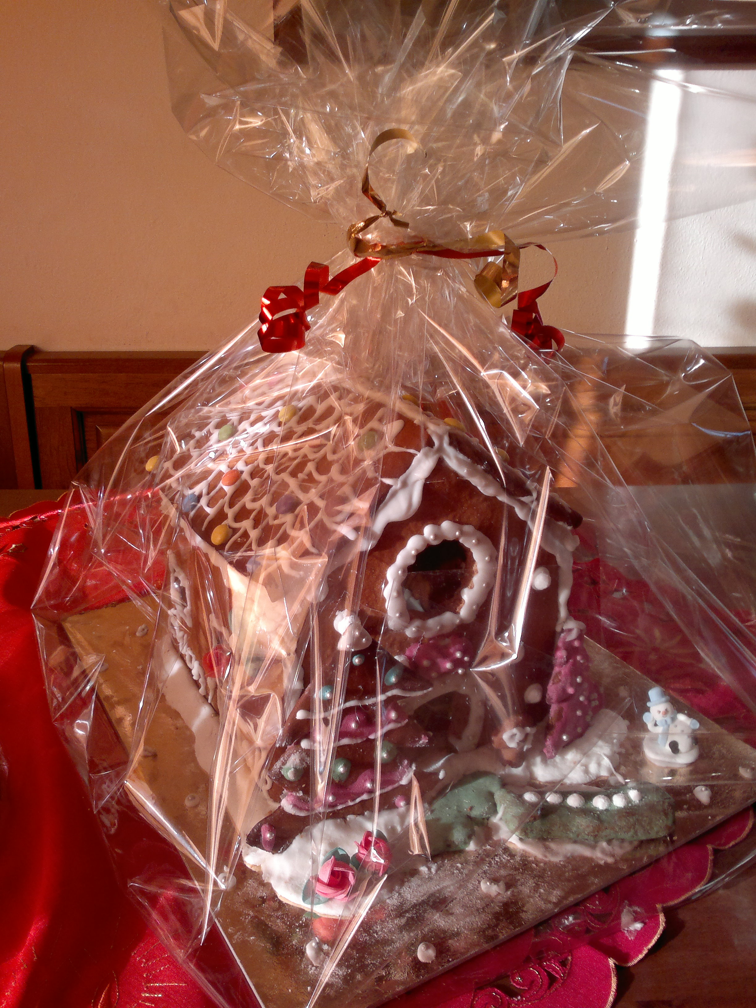 Procedere con l’assemblaggio quando è completamente e perfettamente asciutto, stendere sulla base (vassoio) la pasta di zucchero, serve a non far scivolare la casetta, e poi con la glassa reale assemblate tutte le pareti laterali e poi lasciate asciugare almeno 2/3 ore prima di posizionare il tetto facendolo aderire sempre con la glassa e fare le rifiniture.