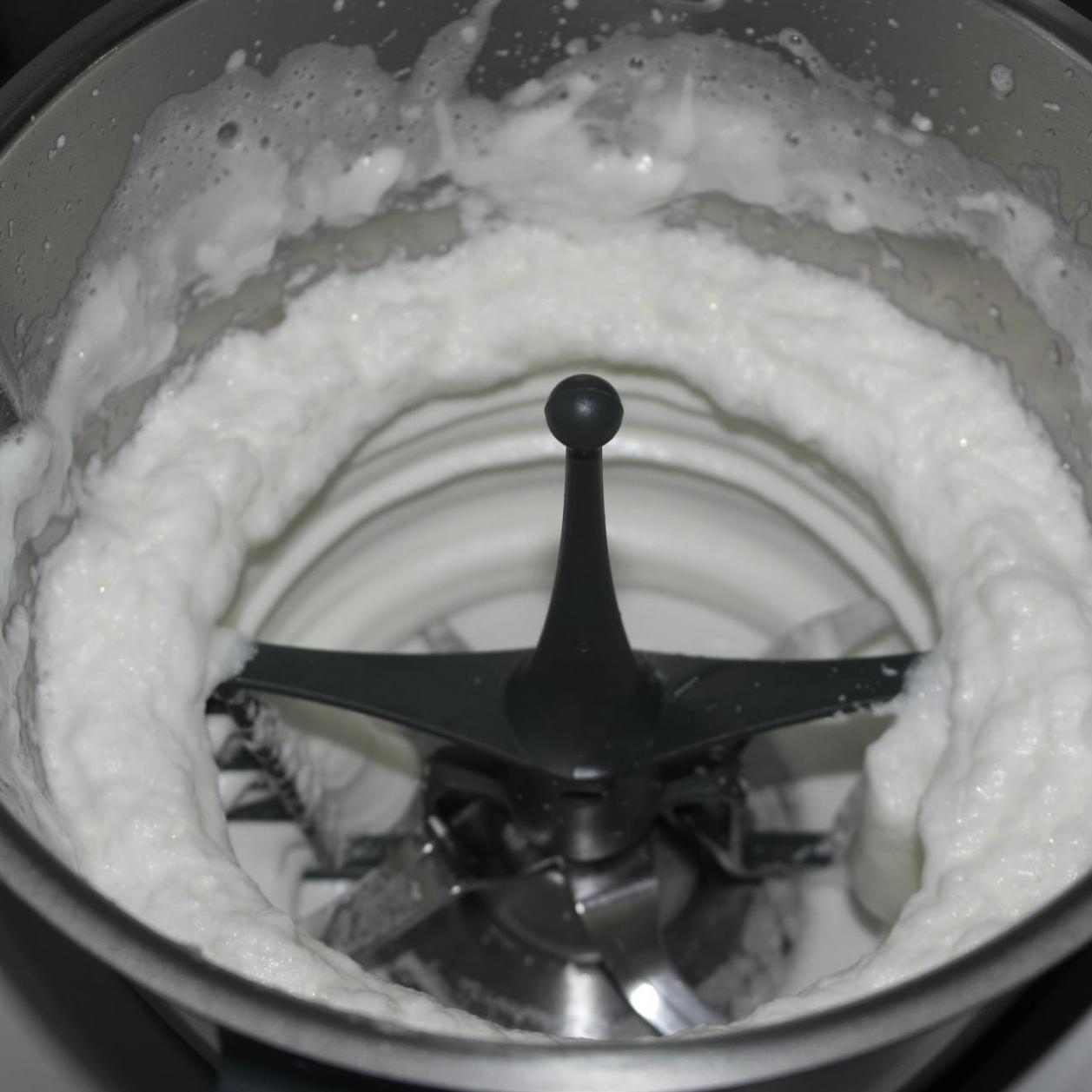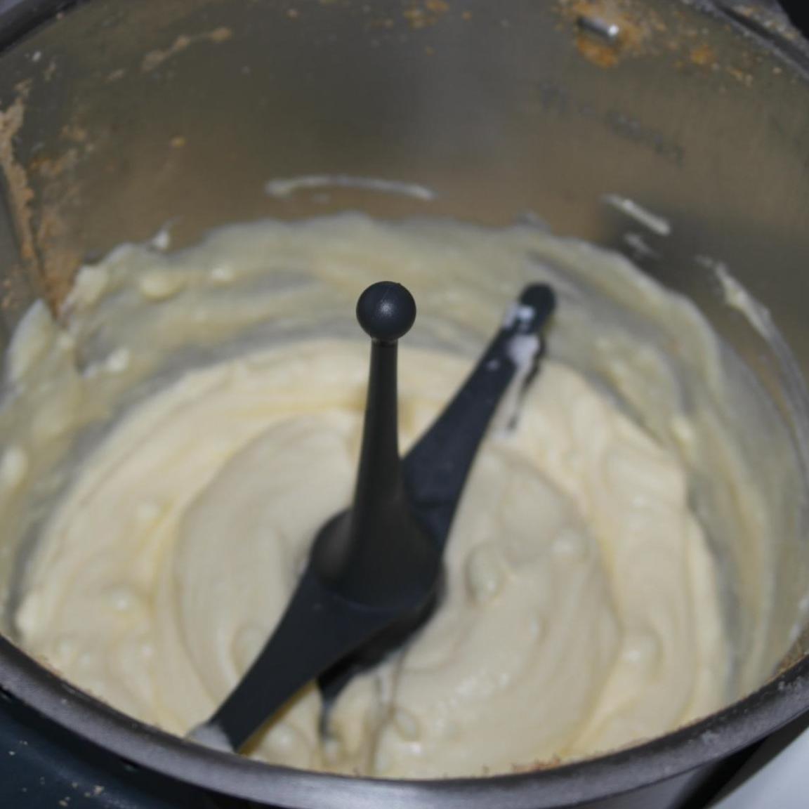 Aggiungere tutti gli altri ingredienti (compresi gli albumi a neve) e mescolare: 1 min vel 2.