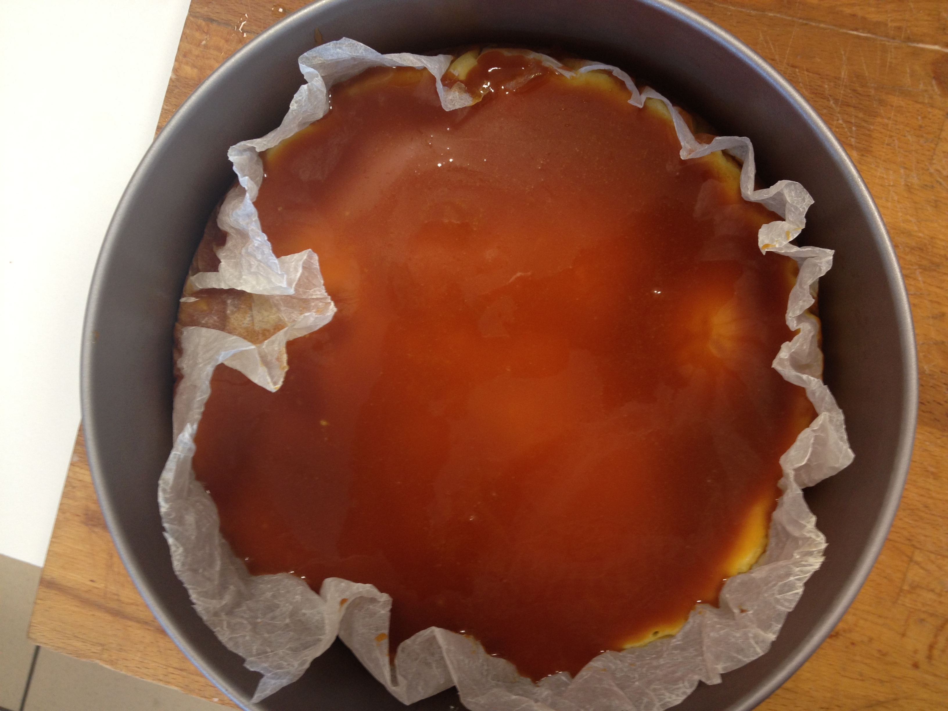17. Far raffreddare e versare il caramello sulla torta, riporre nel frigorifero per 3 ore prima di servire.