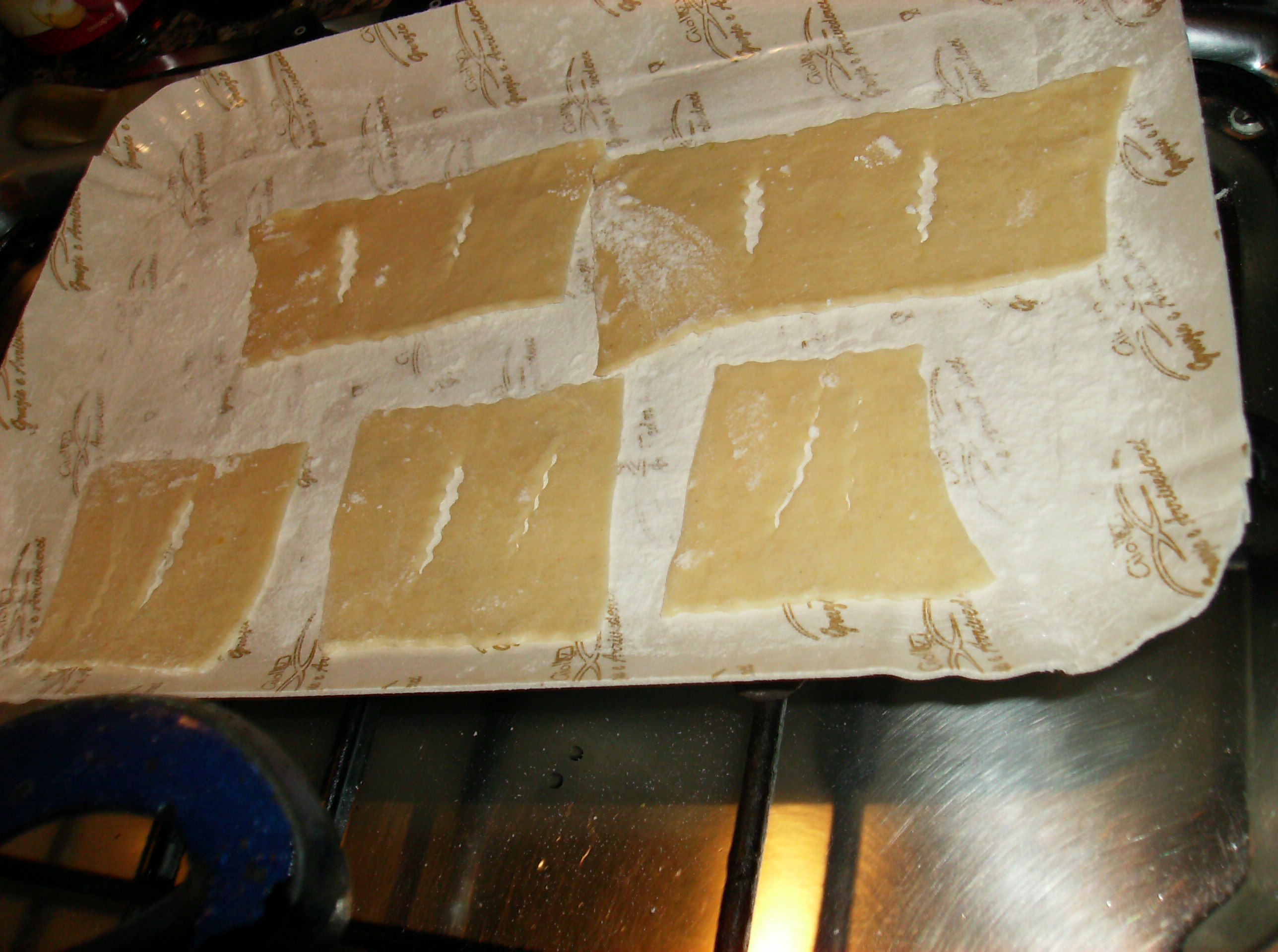 Stendere con la macchinetta delle strisce e suddividerle in rettangoli con la rotella facendo due incisioni al centro.